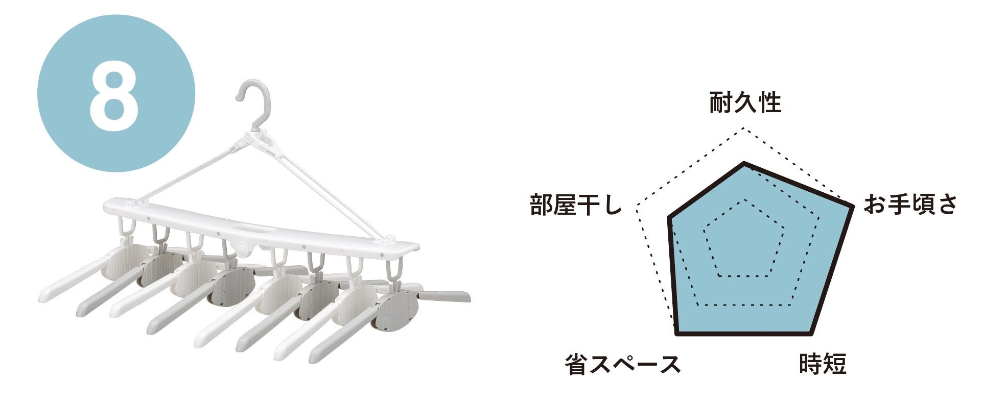 - 面倒な洗濯物の取り込みがワンタッチで出来る8連ハンガー