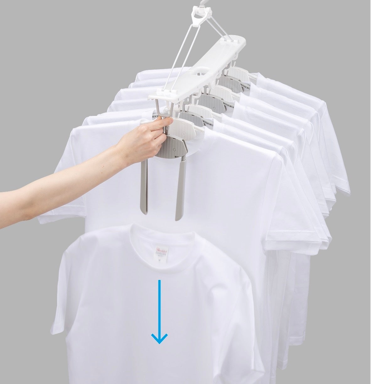 省スペースでまとめて干せるのはもちろん、ワンタッチで簡単に洗濯物が取り込める超時短アイテムなんです。