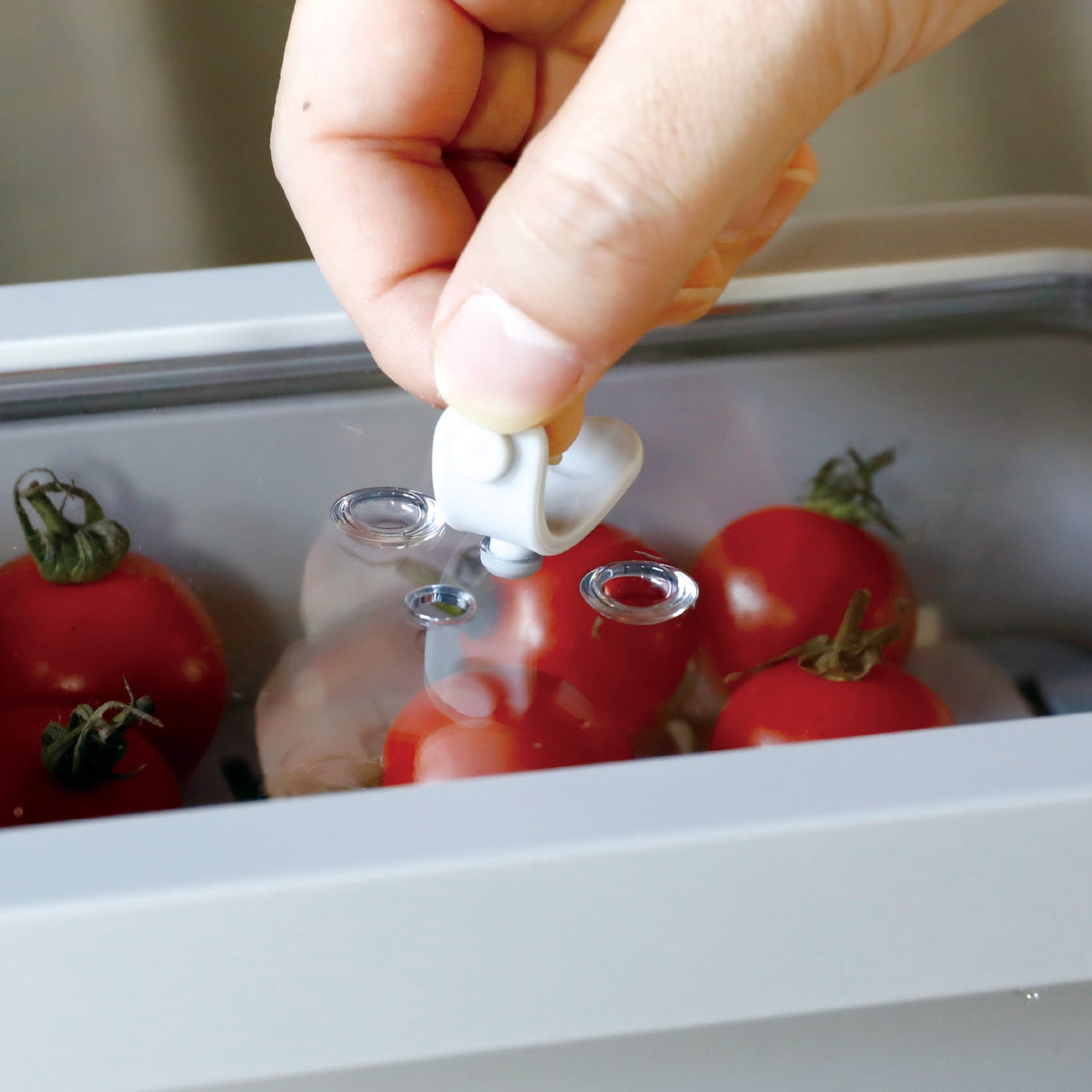 エチレンガスなどを溜めず空気の入れ替えが出来る換気口付き(密閉力の高いシリコーン製)。