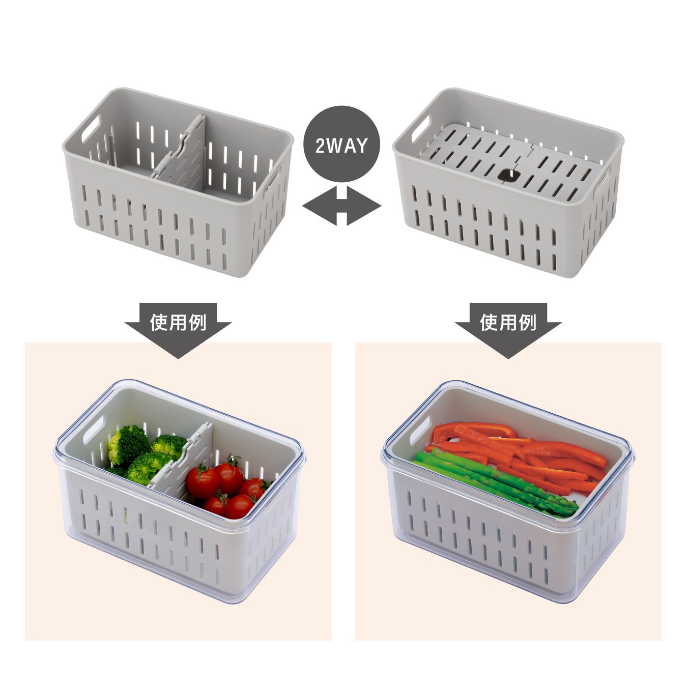 縦と横に仕切れる2way仕様で、縦に仕切れば2種類の食材が一目で分かりやすく保存でき、
