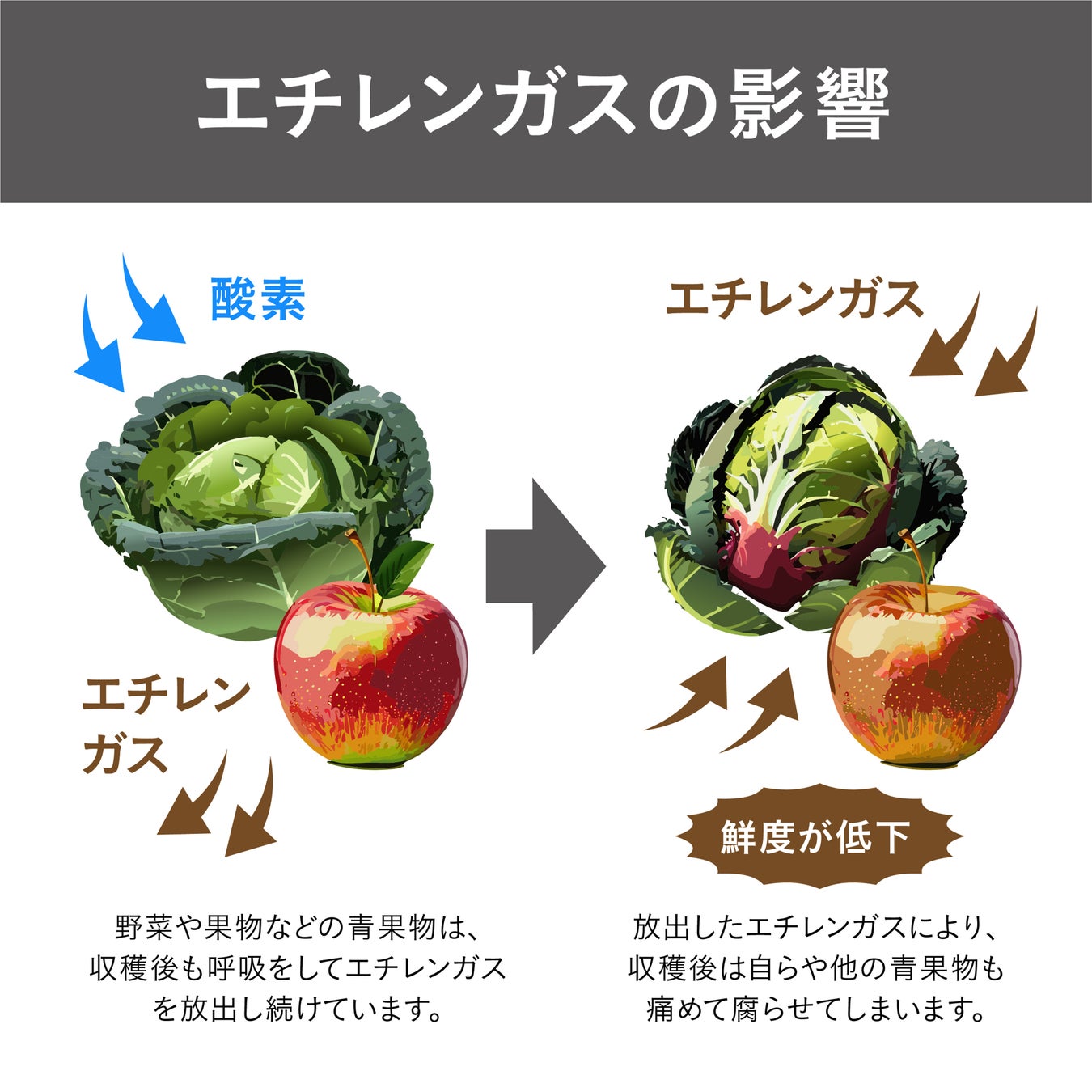 ※青果物によっては保存時にエチレンガスを出すものがあります。