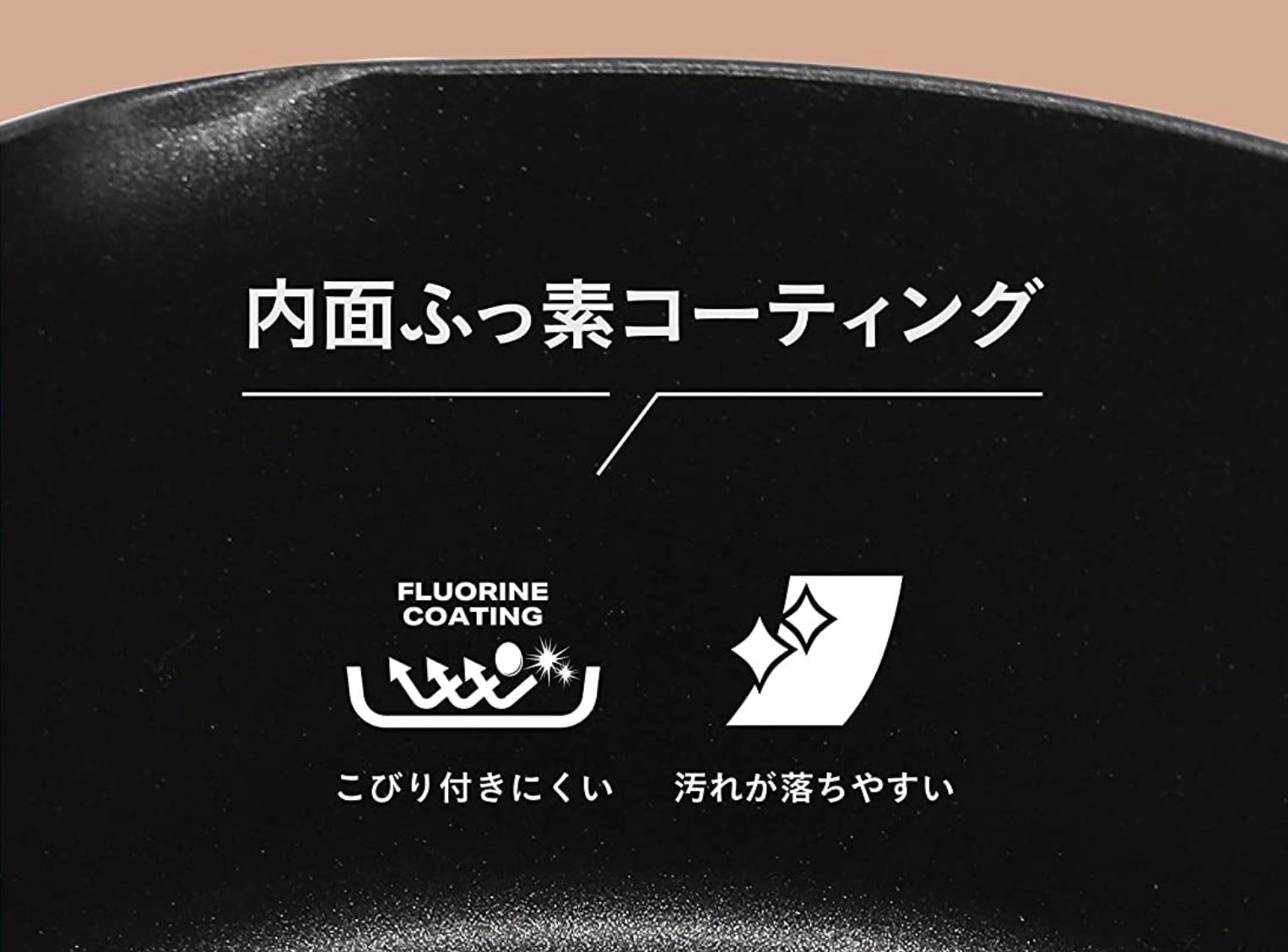 また、内面は汚れが付きにくい「ふっ素コーティング加工」を施しています。