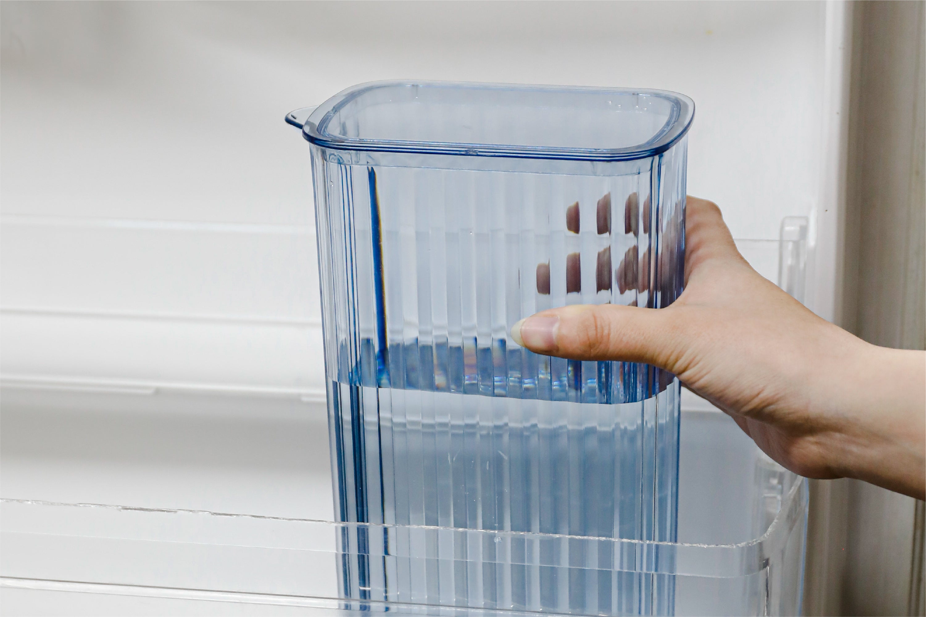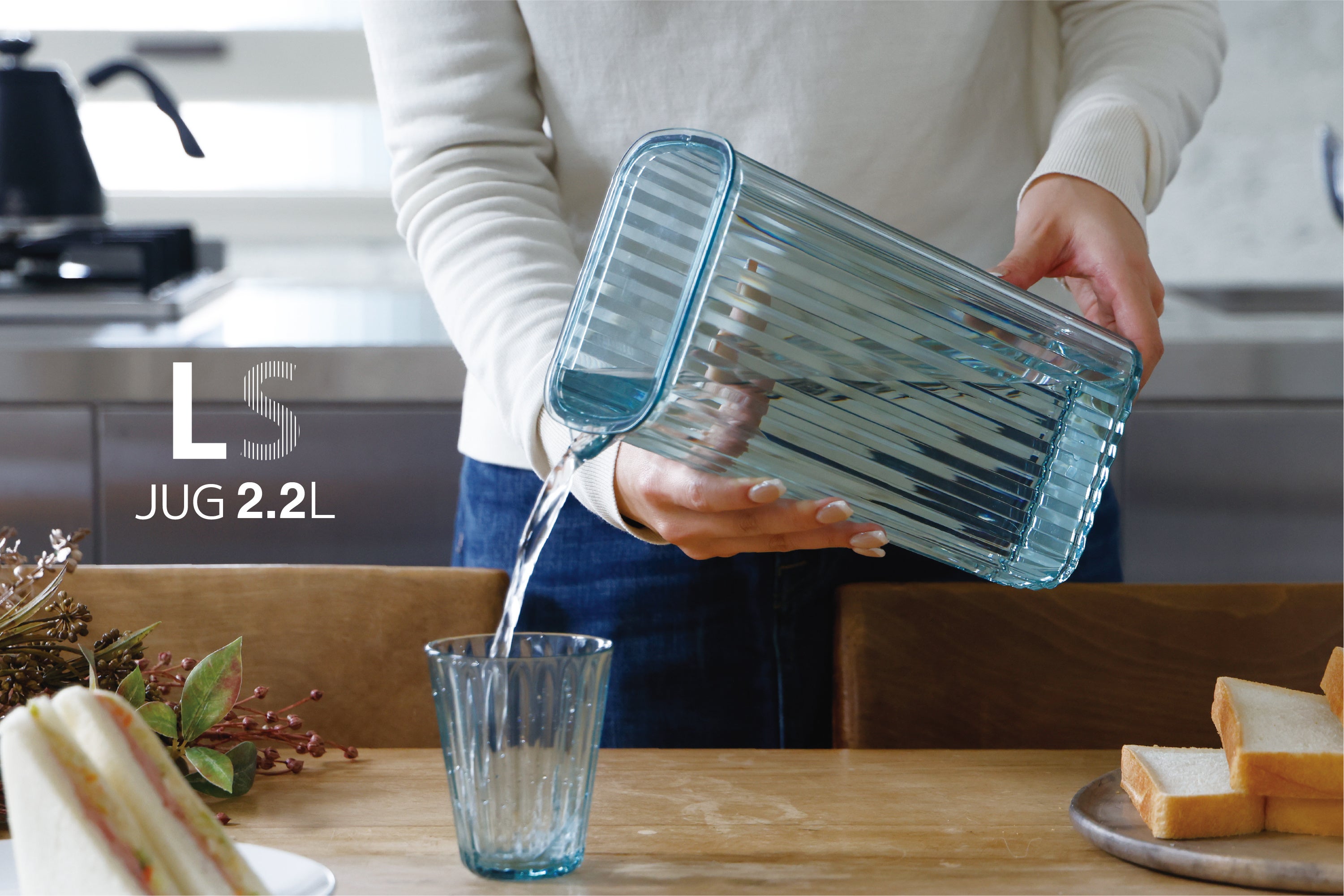 透明度の高いAS樹脂を使用し、ガラスのような美しい見た目を再現した「LSシリーズ」から、大容量の2.2Lジャグが新登場。樹脂製だから軽くて丈夫で、2パーツのみでお手入れも簡単。冷蔵庫のドアポケットにもすっきり入れられるスリムな形状で、見た目も使いやすさも拘りたい方におすすめな商品です。