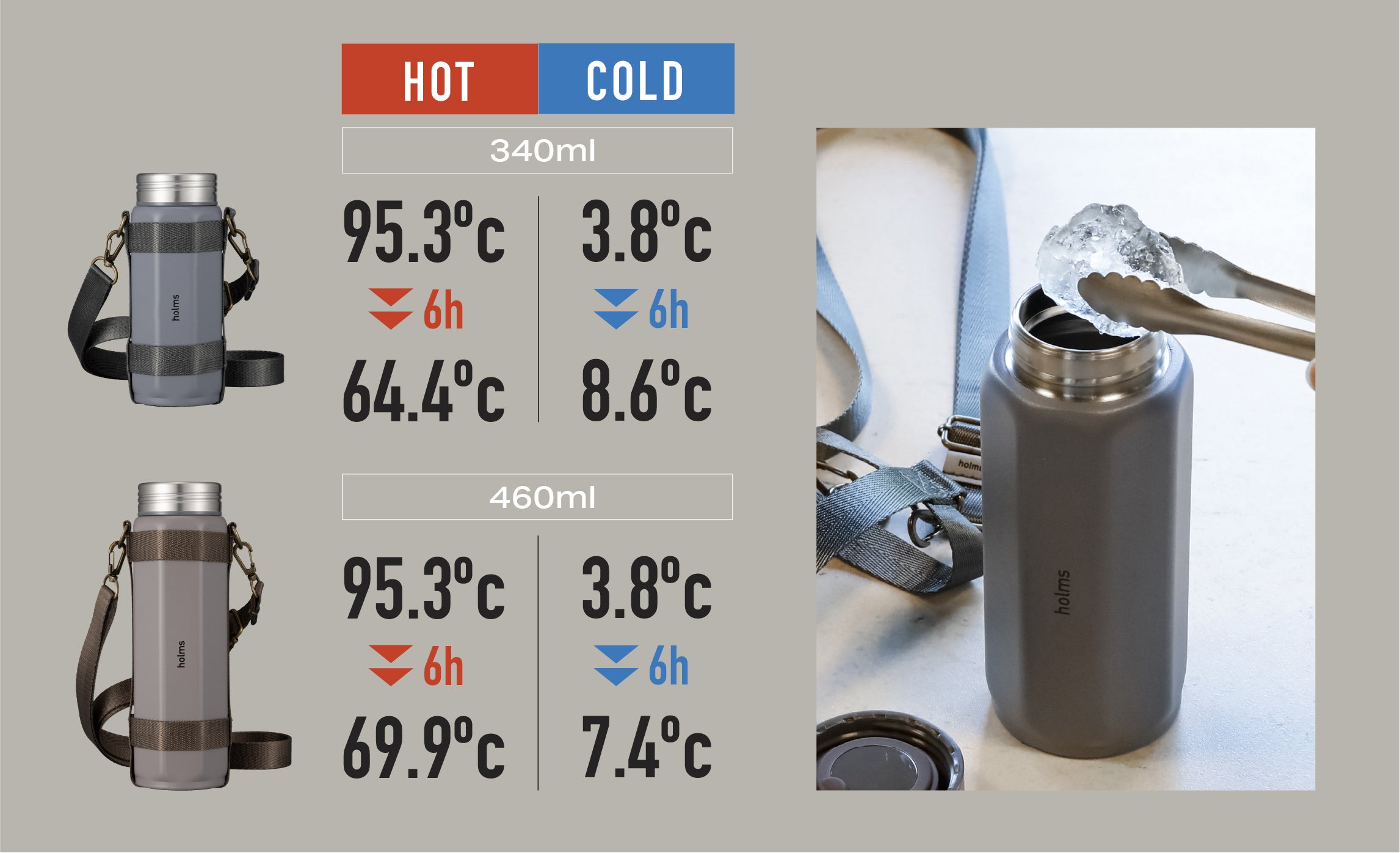 保冷効力:3.8℃→8.3℃以下(6時間)