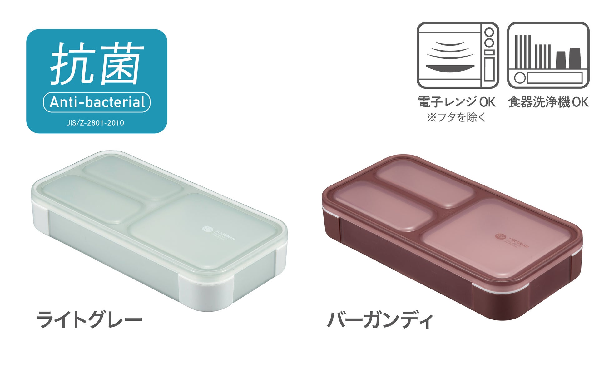 “汁漏れしにくいから立てて運べる”のが特徴的な薄型弁当箱フードマンシリーズ。