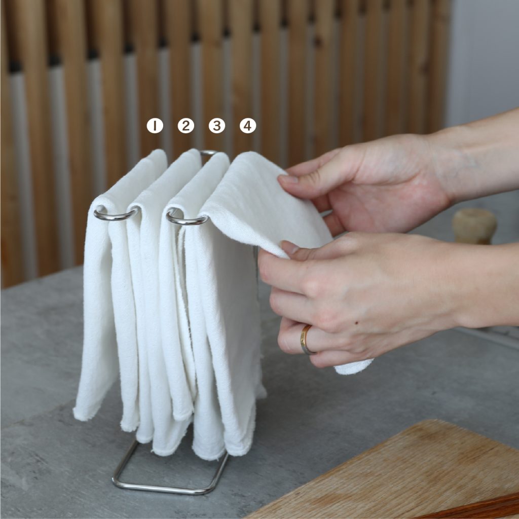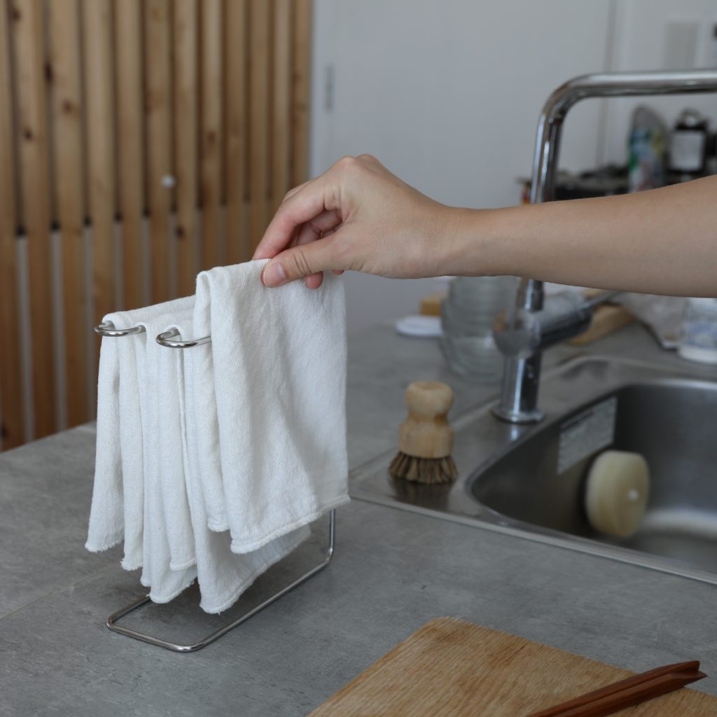 ふきんをしっかり乾かしたい日も、調理中にサッと使いたい時も、ストックしたい時も、これ一つでOK。