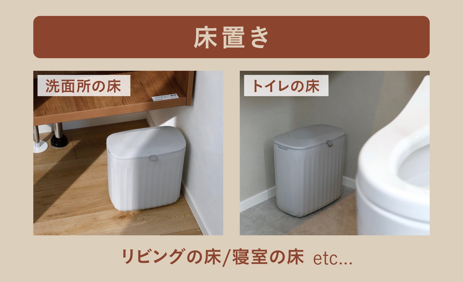 コンパクトなので、キッチンのドアや洗濯機の側面、洗面所やトイレなど、あらゆる場所に置いても場所を取ることなく使えます。