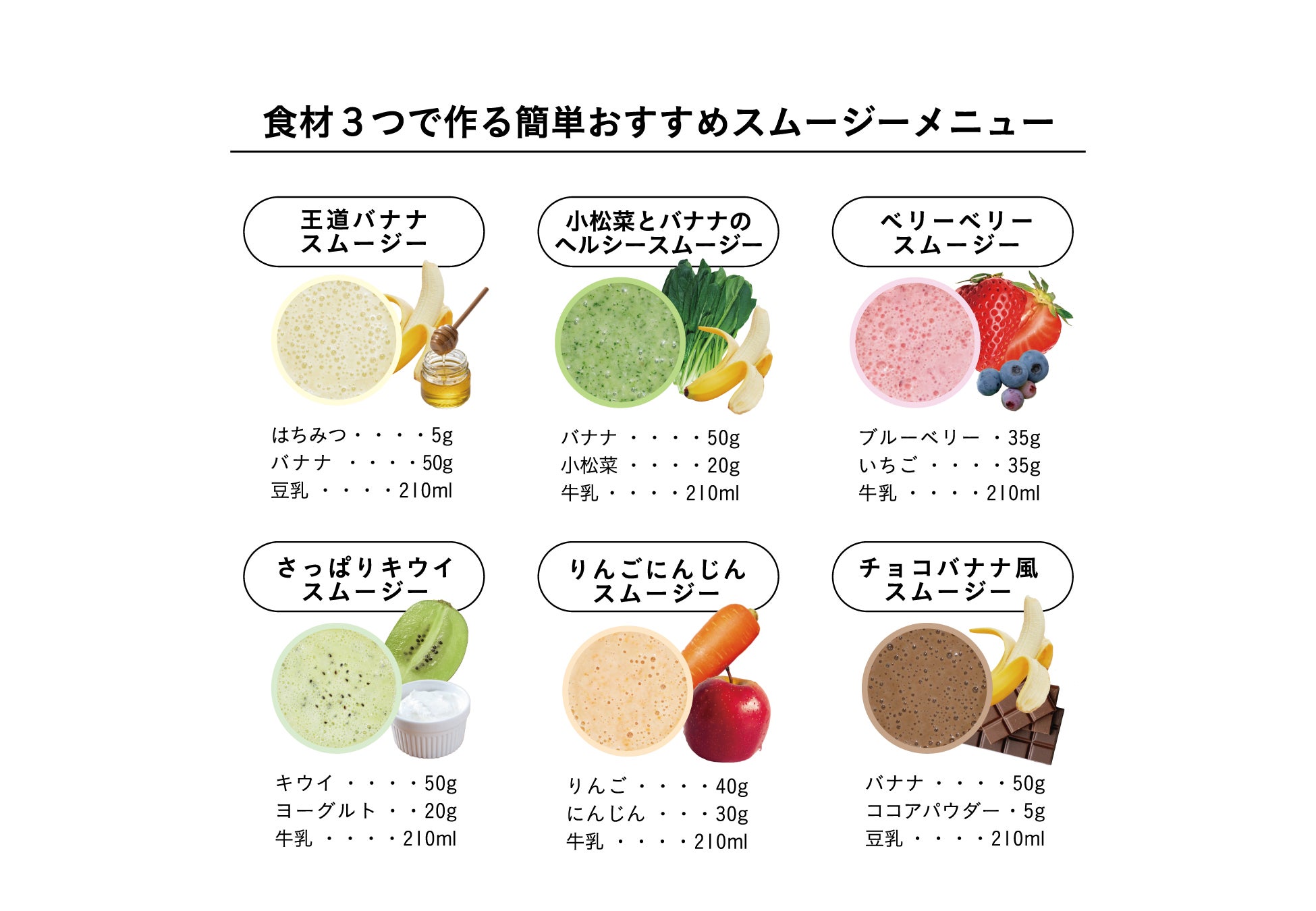 材料3つでおいしいスムージーが作れるので迷ったときは参考にしてみて下さいね!