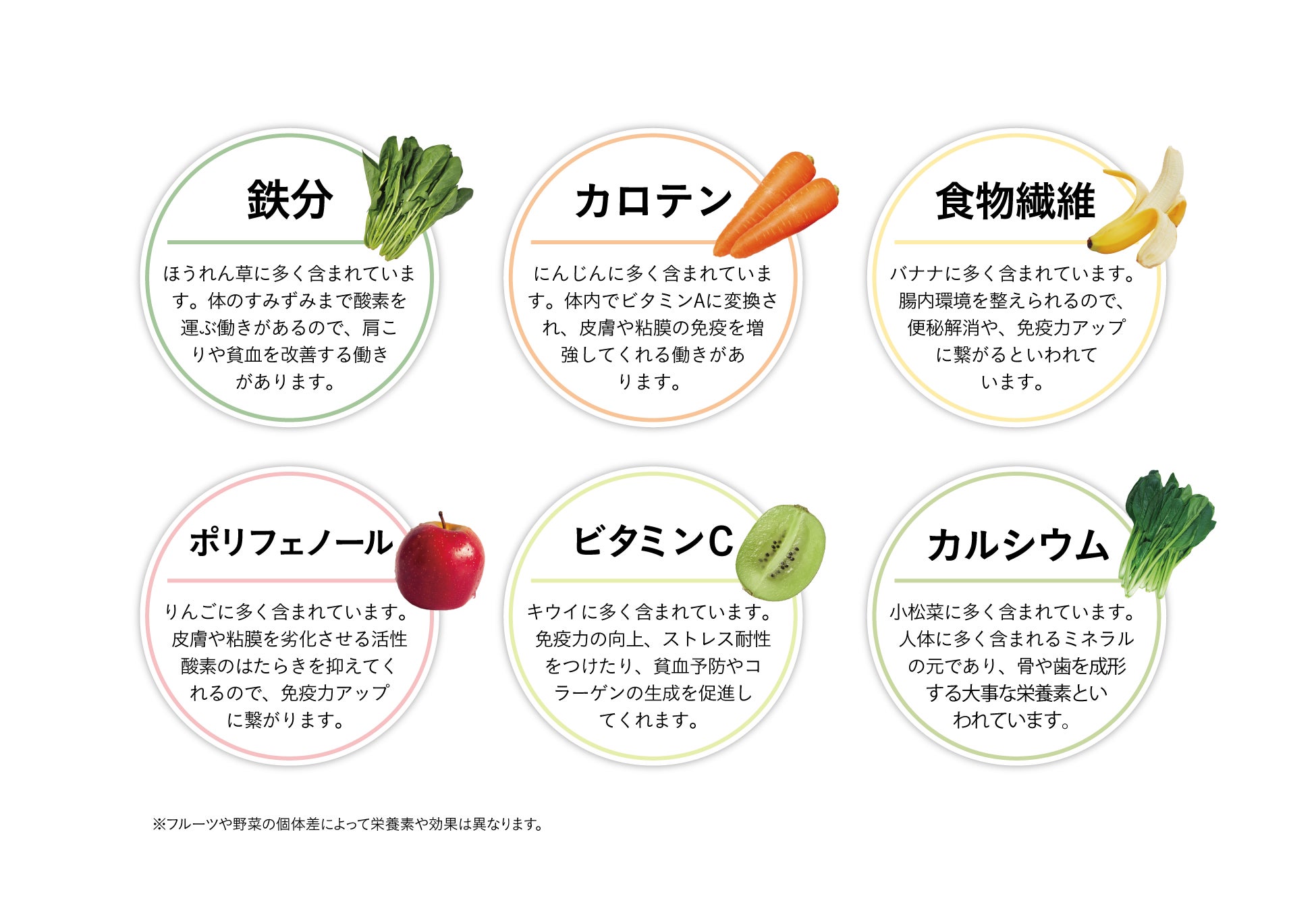 野菜や果物を皮も含めて丸ごとスムージーにすることで、忙しい中でも時間をかけることなく、必要な栄養素を効率的に摂取することが出来るようになります。