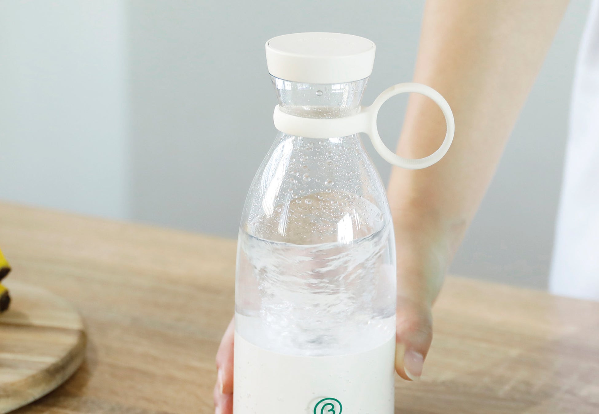 キッチンで材料を用意してボトルに入れた後は、リビングやトレーニングルームなどで撹拌して飲むことが出来ます。出先でもスムージーが作れるので、いつでもフレッシュなスムージーを飲めるんです。