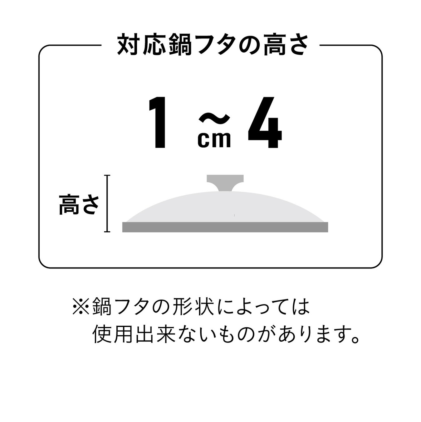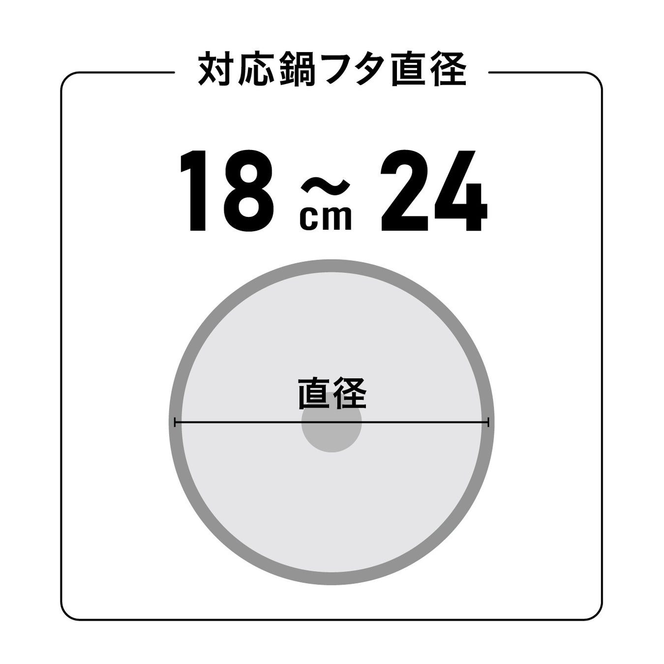 直径18cm~24cm、高さ1~4cmと、幅広い鍋フタのサイズに対応しています。
