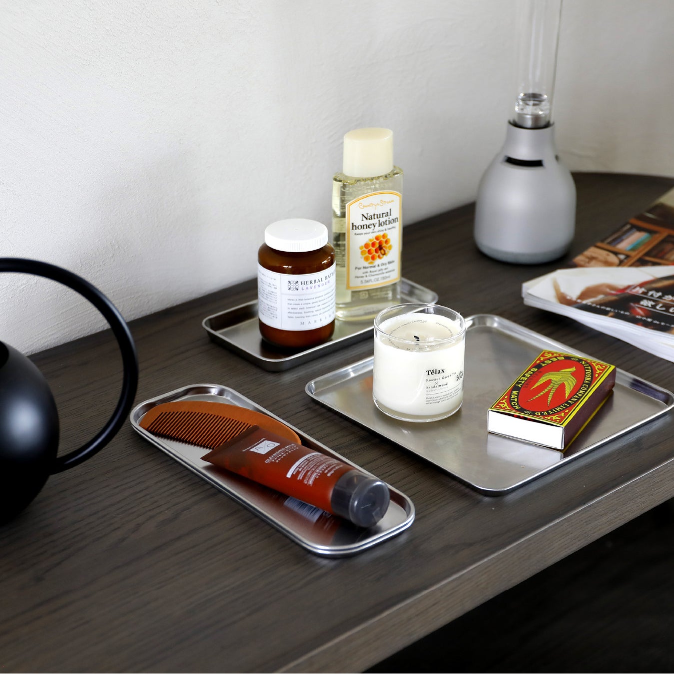汚れが心配なボディークリームなどを置くのにも便利。