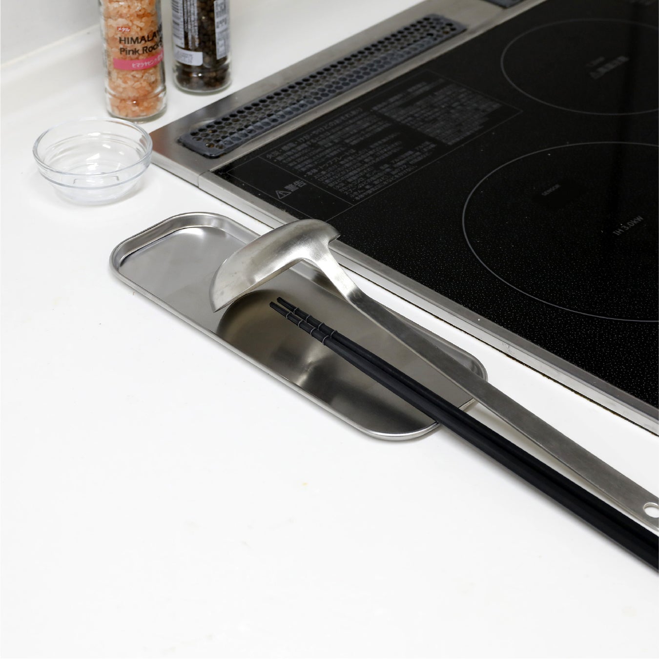 調理道具の一時置きにも便利なステンレストレー『スリム ST.2』