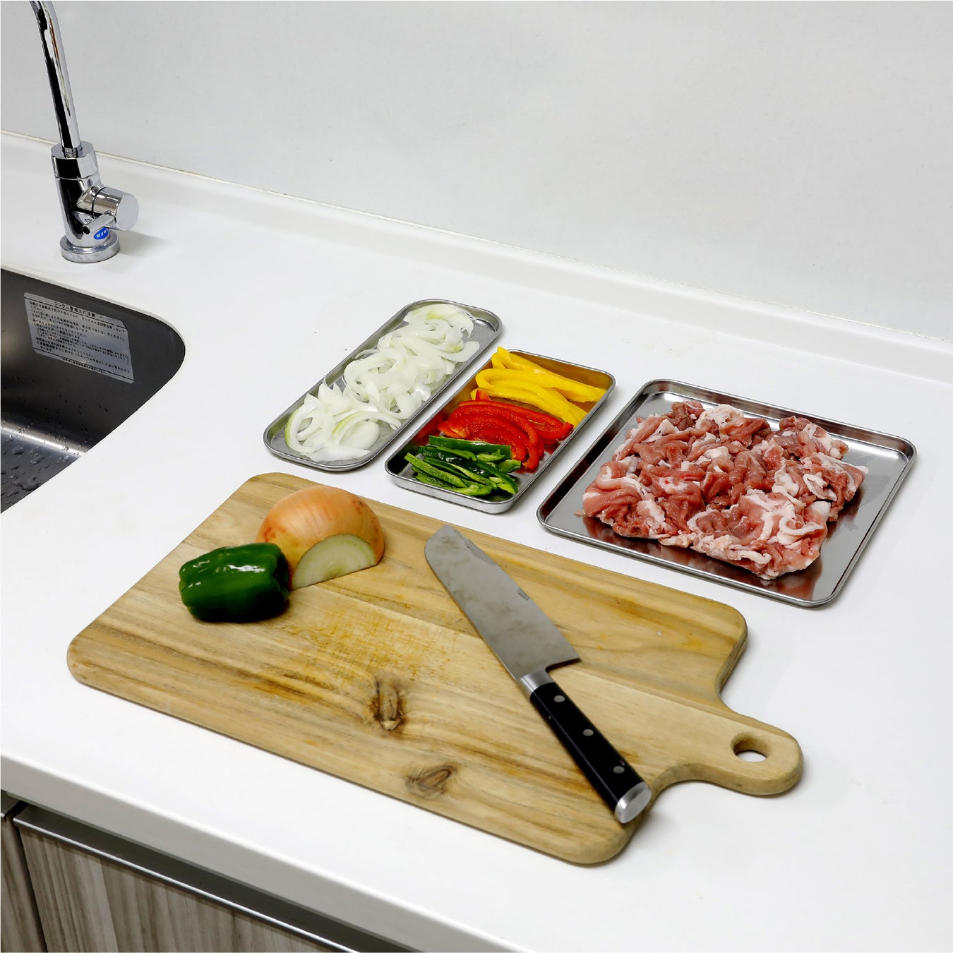 ステンレストレーを使って食材ごとに整理すれば、スムーズに調理出来ます。