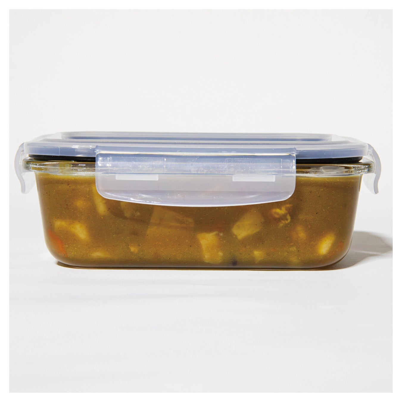 熱に強く変形しにくいのが嬉しいポイント◎。ガラス製なので汚れが落ちやすく、油分の多いカレーなども色移りを気にすることなく保存出来ます。