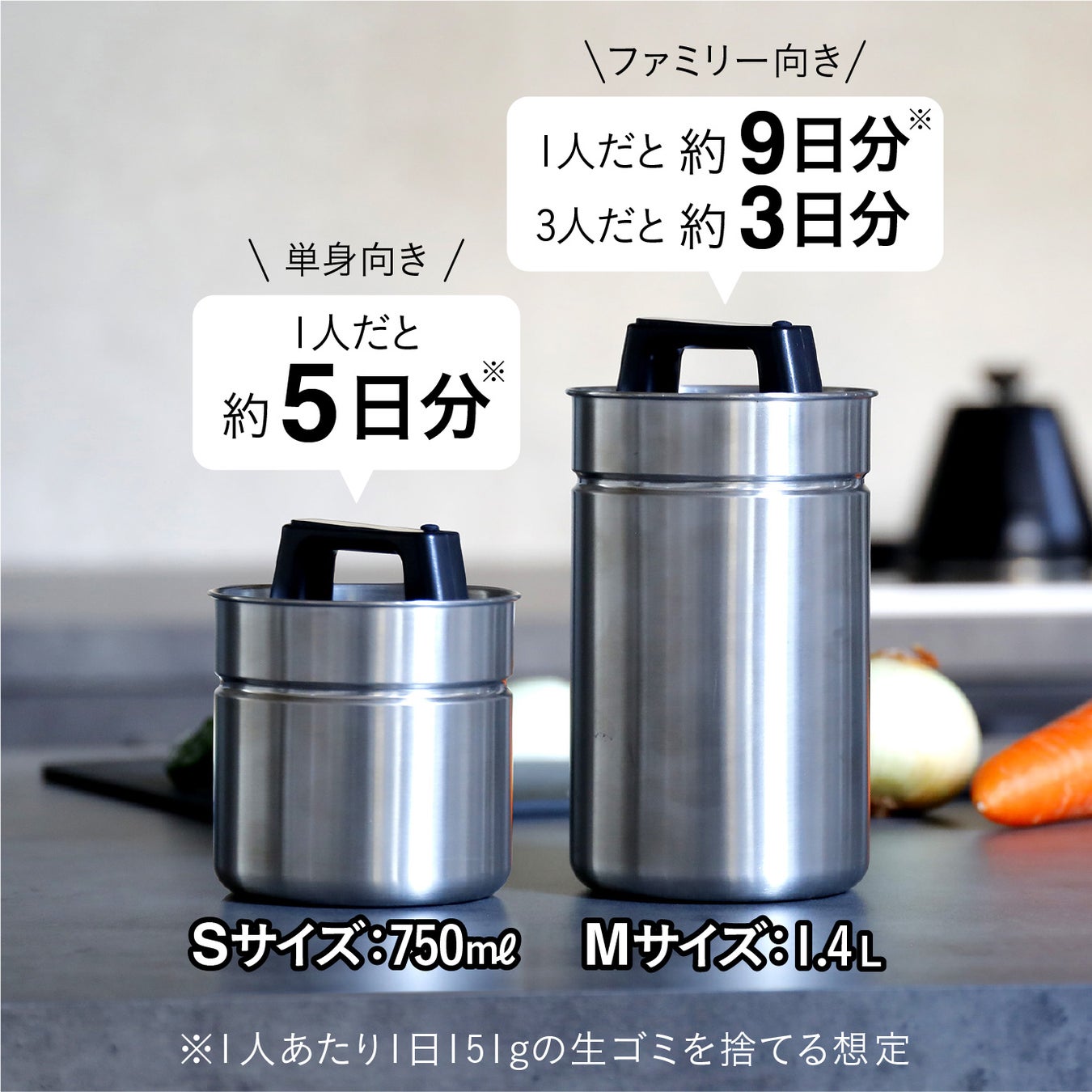 Mサイズ(実容量1.4L):約9日分の生ゴミを保管