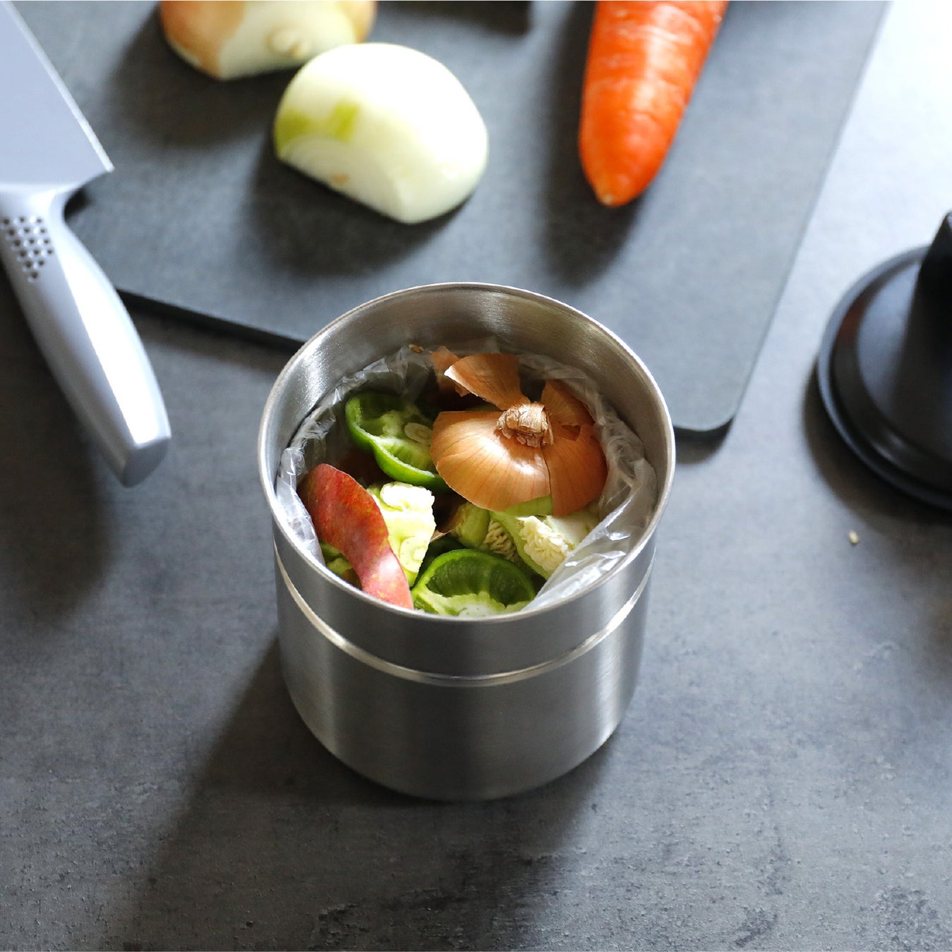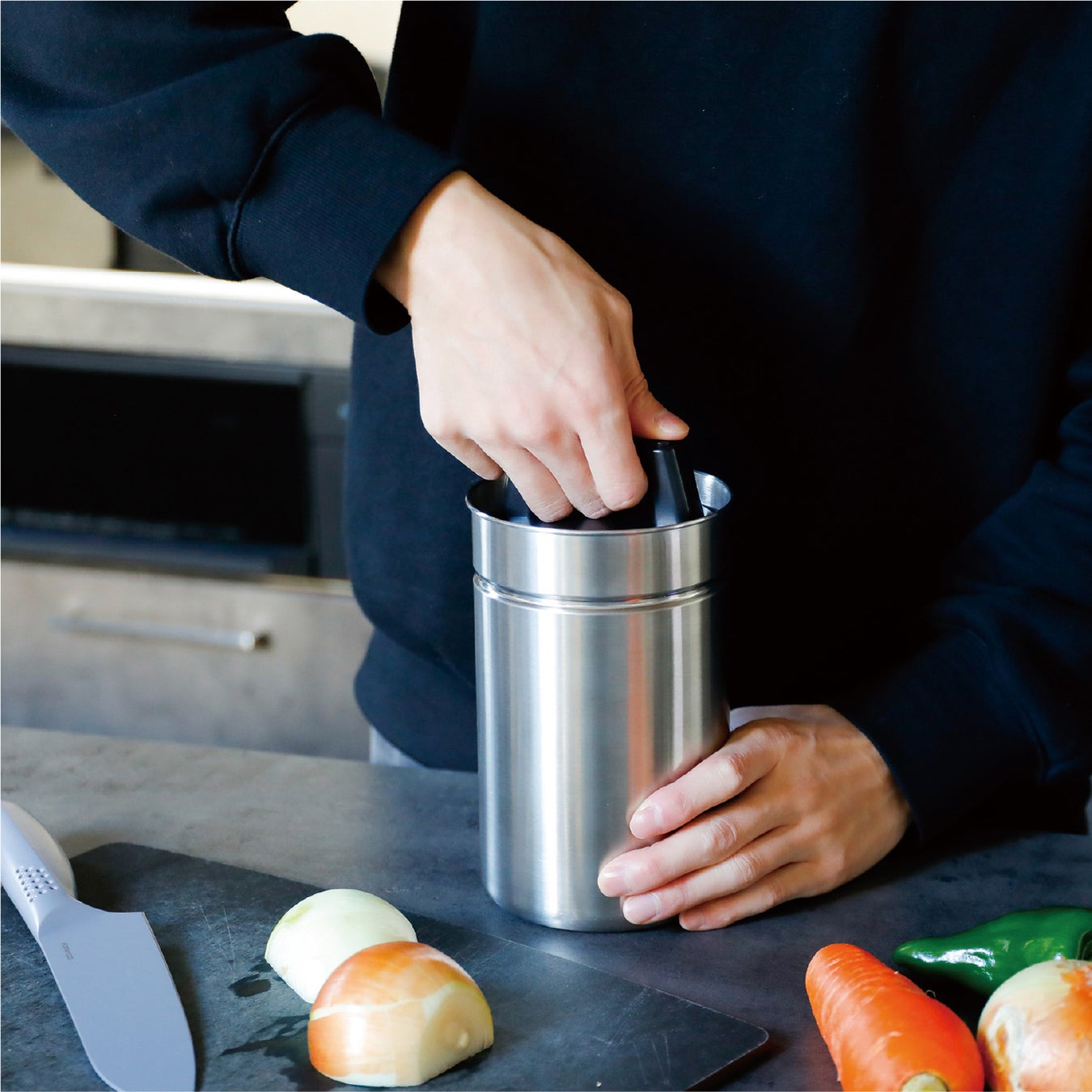 調理中に出た生ゴミをそのまま捨てられる『atomico 密閉出来る生ゴミキャニスターS / M』。