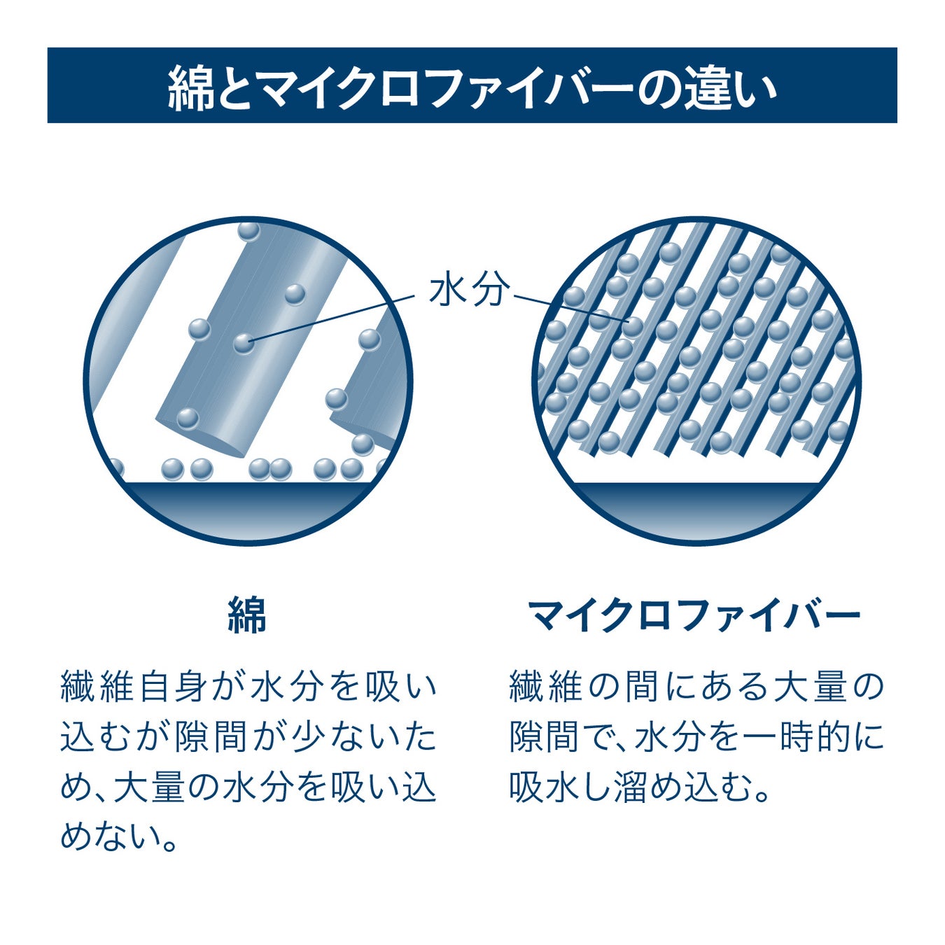 マイクロファイバー製なので吸水量は綿タオルの3.6倍、