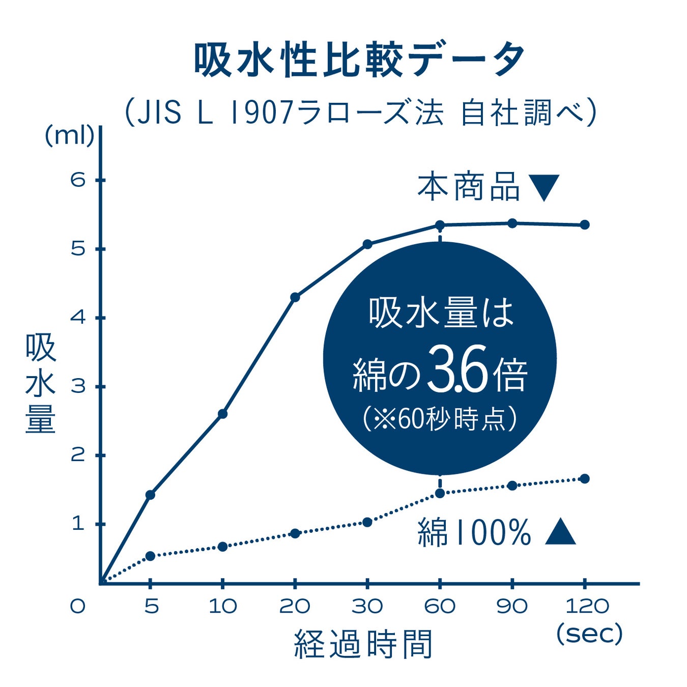 水に触れた瞬間、サッと吸水してくれます。その吸水力はなんと綿のタオルの約3.6倍!