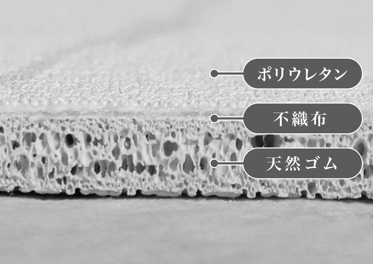 - ポリウレタン、天然ゴム、不織布