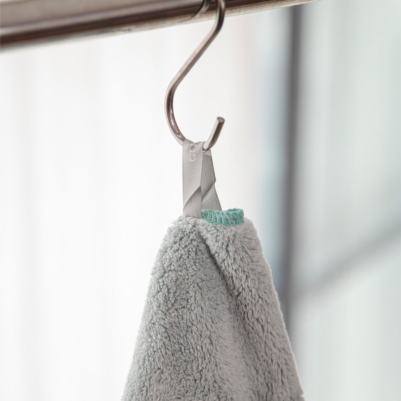 タオルの中央には、ワンポイントにもなっているロゴ入りのリボンが付いているので、