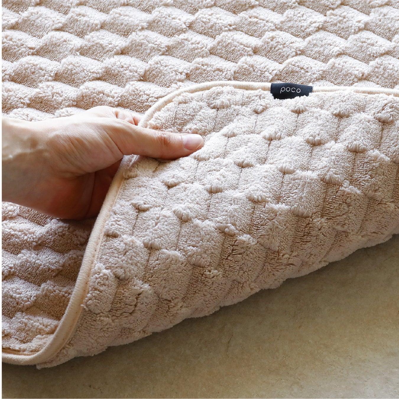 ぽこぽこした感触が何とも心地良い、マイクロファイバータオル素材のバスマット。