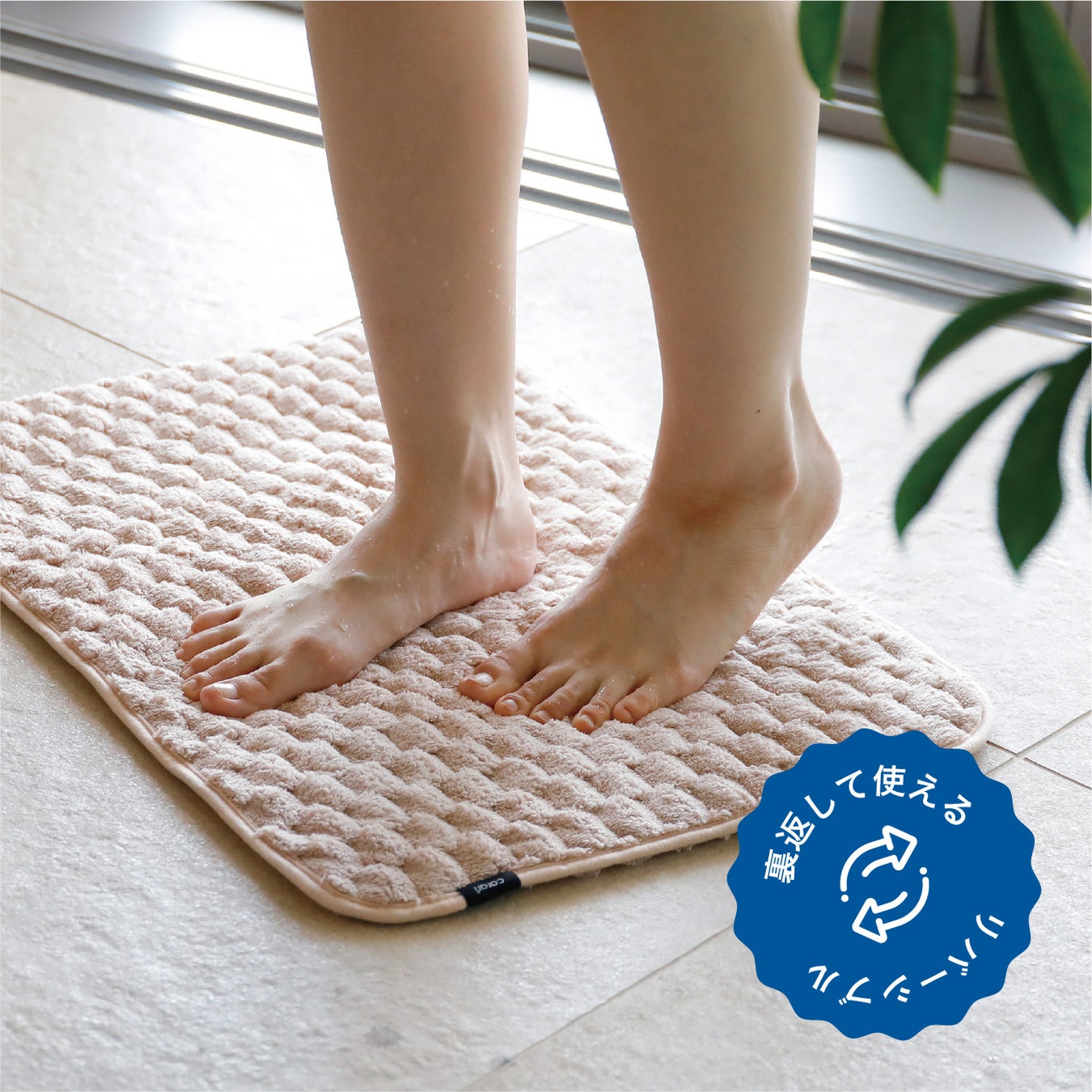 水に触れた瞬間にサッと吸水してくれます。その吸水力は綿のバスマットの2.9倍!