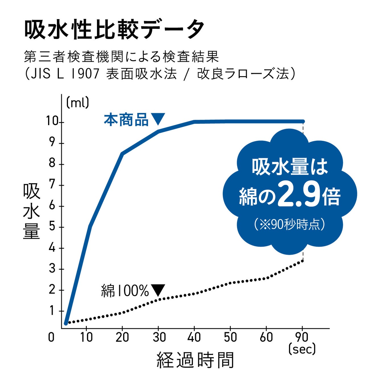 綿の2.9倍の吸水力