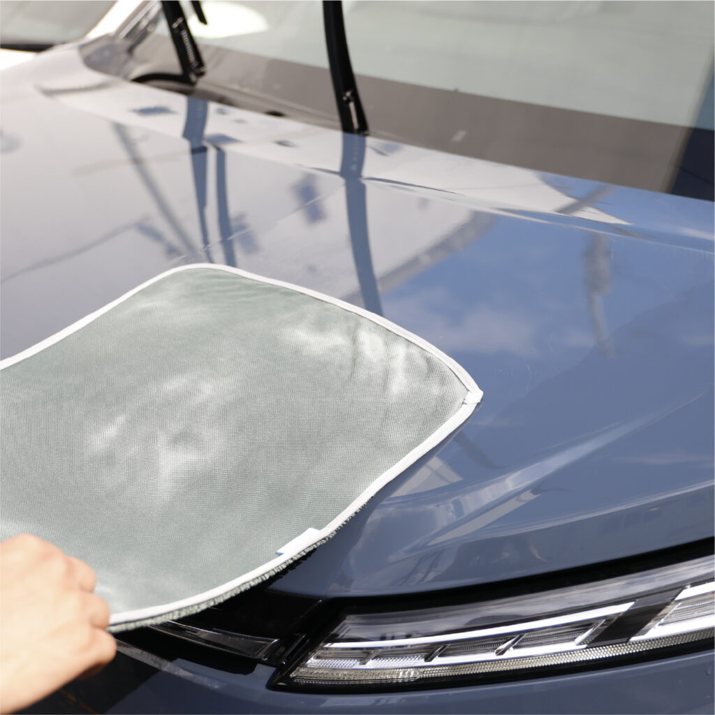 40×40cmはドアまわりやミラーなど細部に、60×50cmはボンネットやフロントガラスなど大きな面に最適 。 - 複数枚セットで使い分け自由