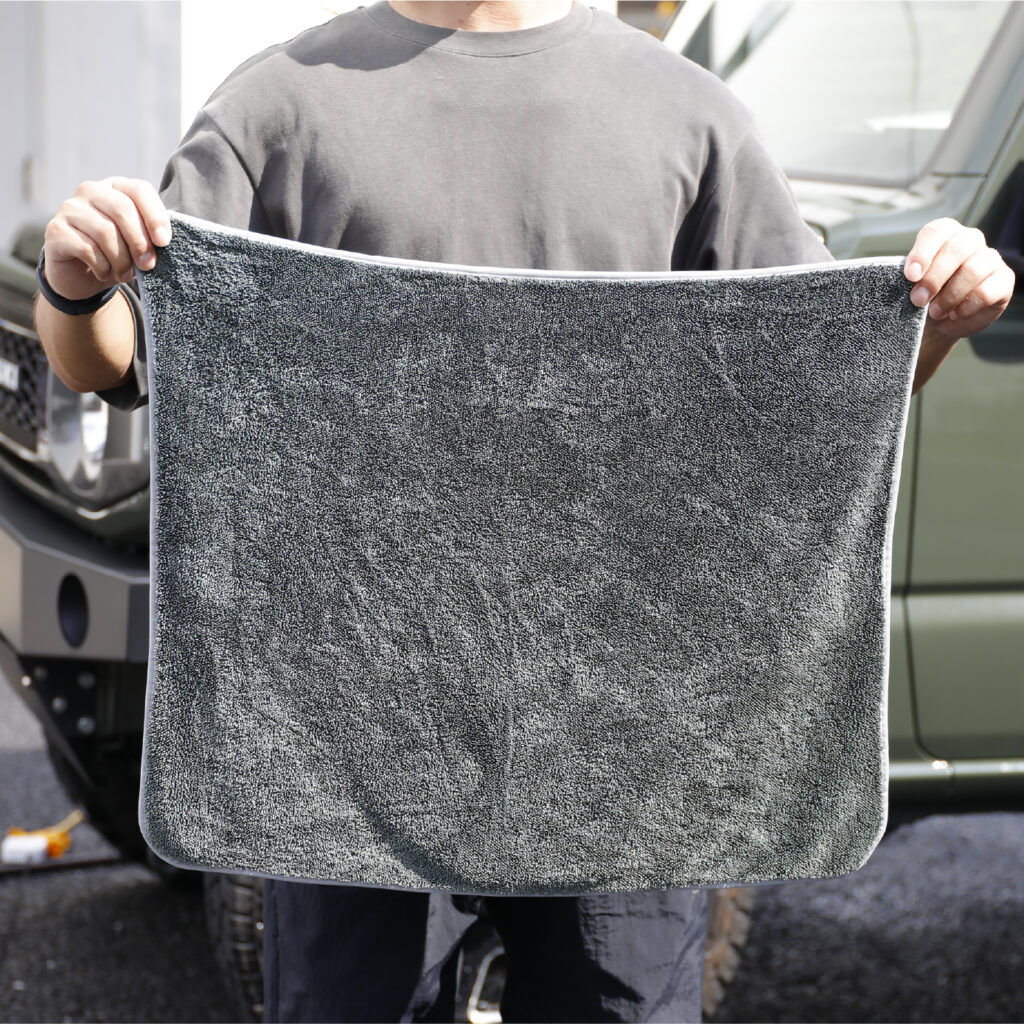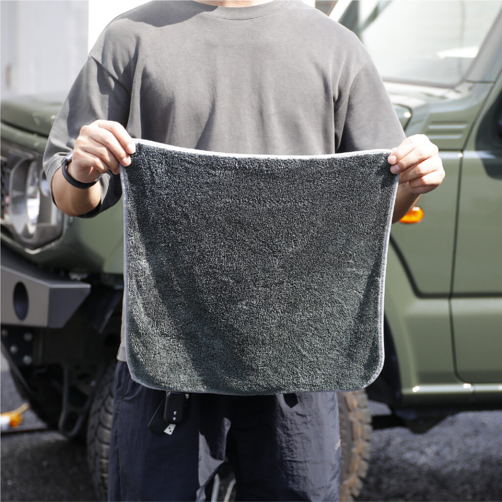 市販のタオルでは吸水力が足りず、何度もゴシゴシしなければならない。けれども強く擦れば傷の原因にもなる。糸くずや毛羽立ちが残って、きれいに仕上げるのは意外と難しいのです。