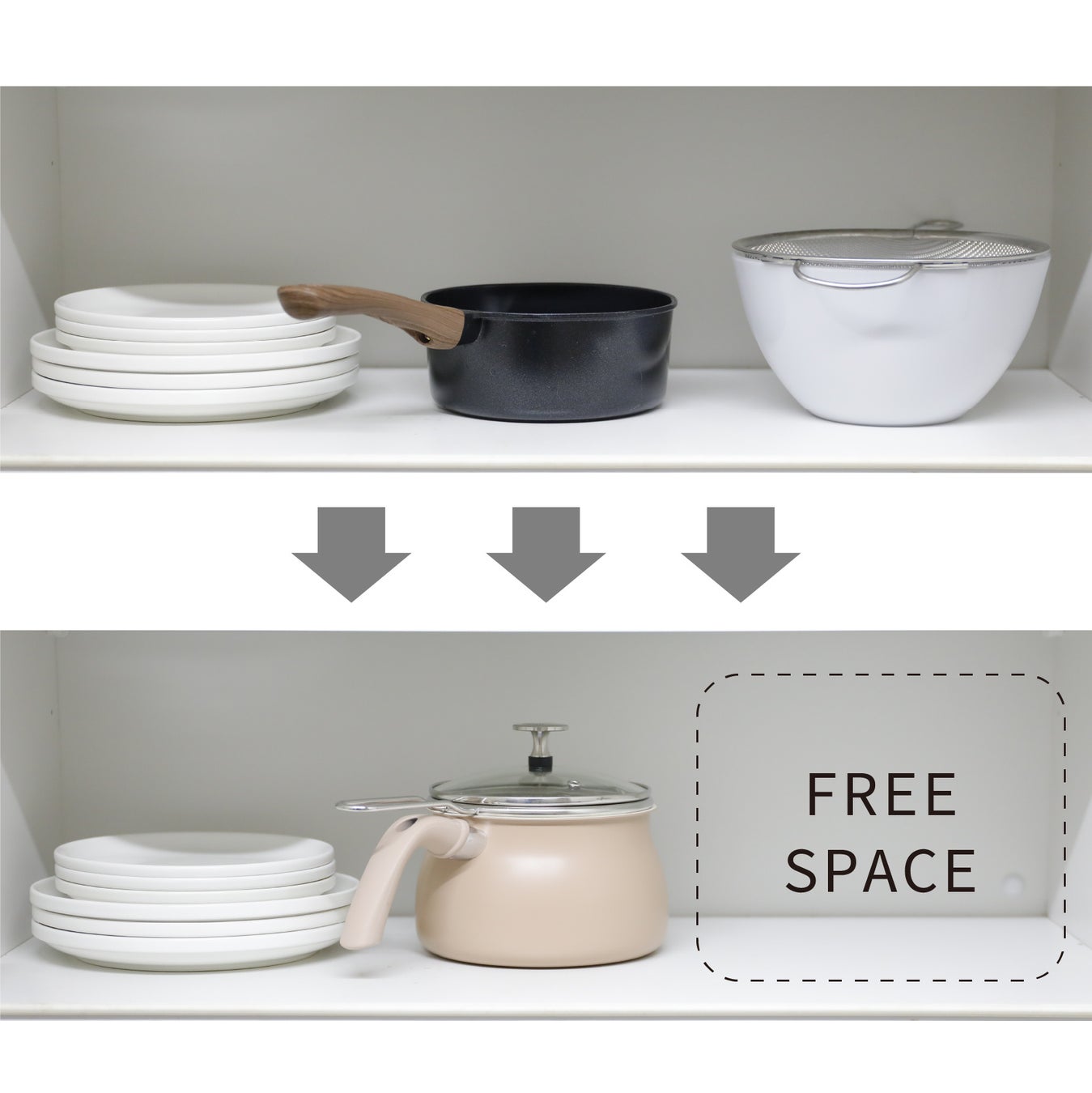 棚にスペースが空くので他の調理器具も棚に収納出来ます。