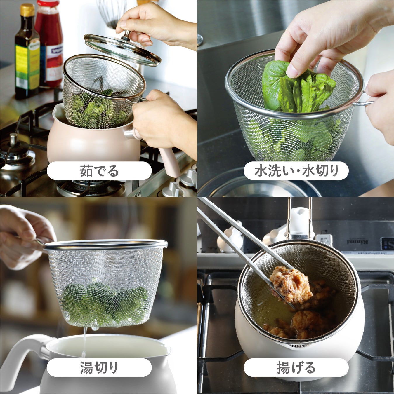 一つで8役をこなしてくれる便利なザル付き多用途鍋をご紹介致します。