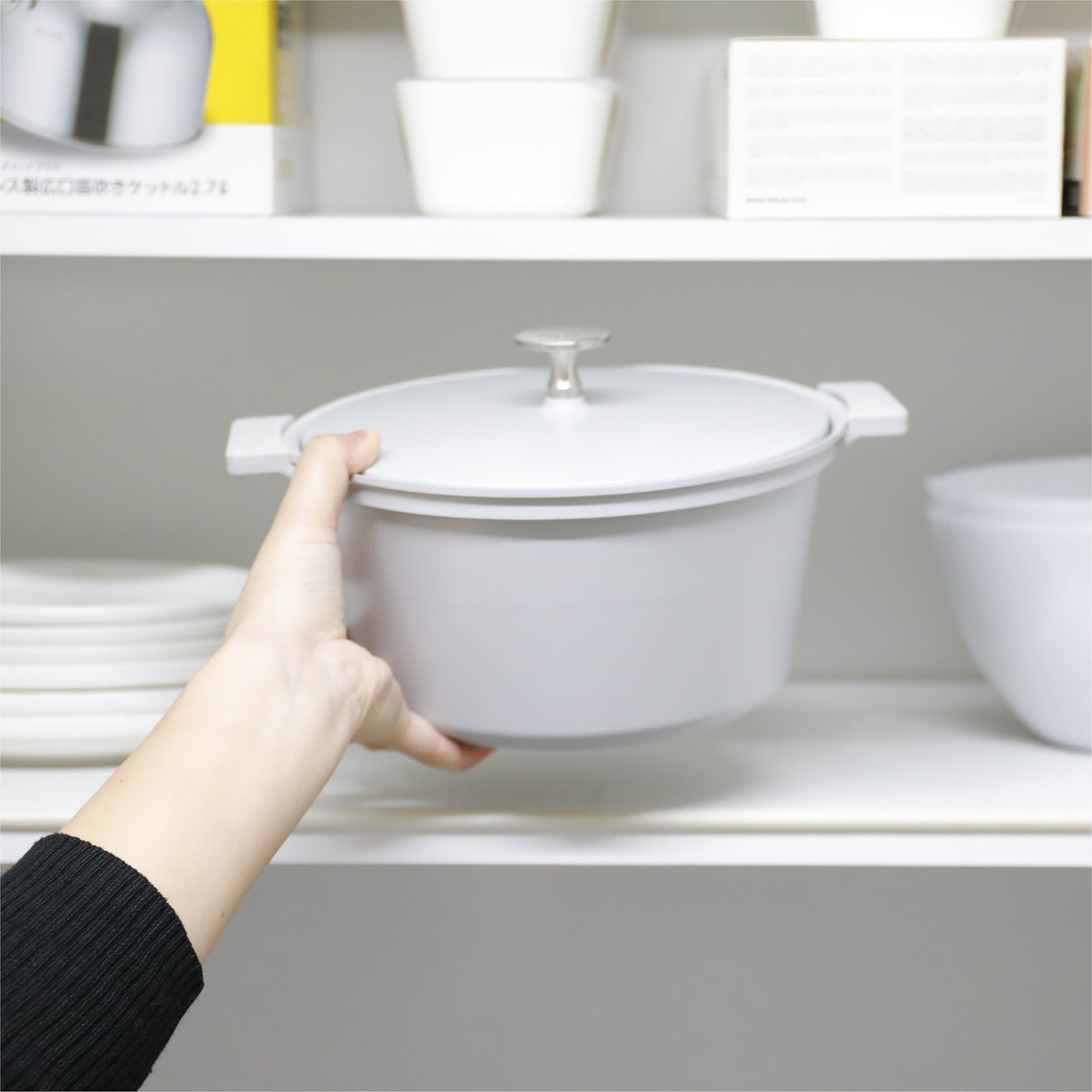 蓋と本体合わせて1.2kg程度なので、女性の方も片手で持てます。
