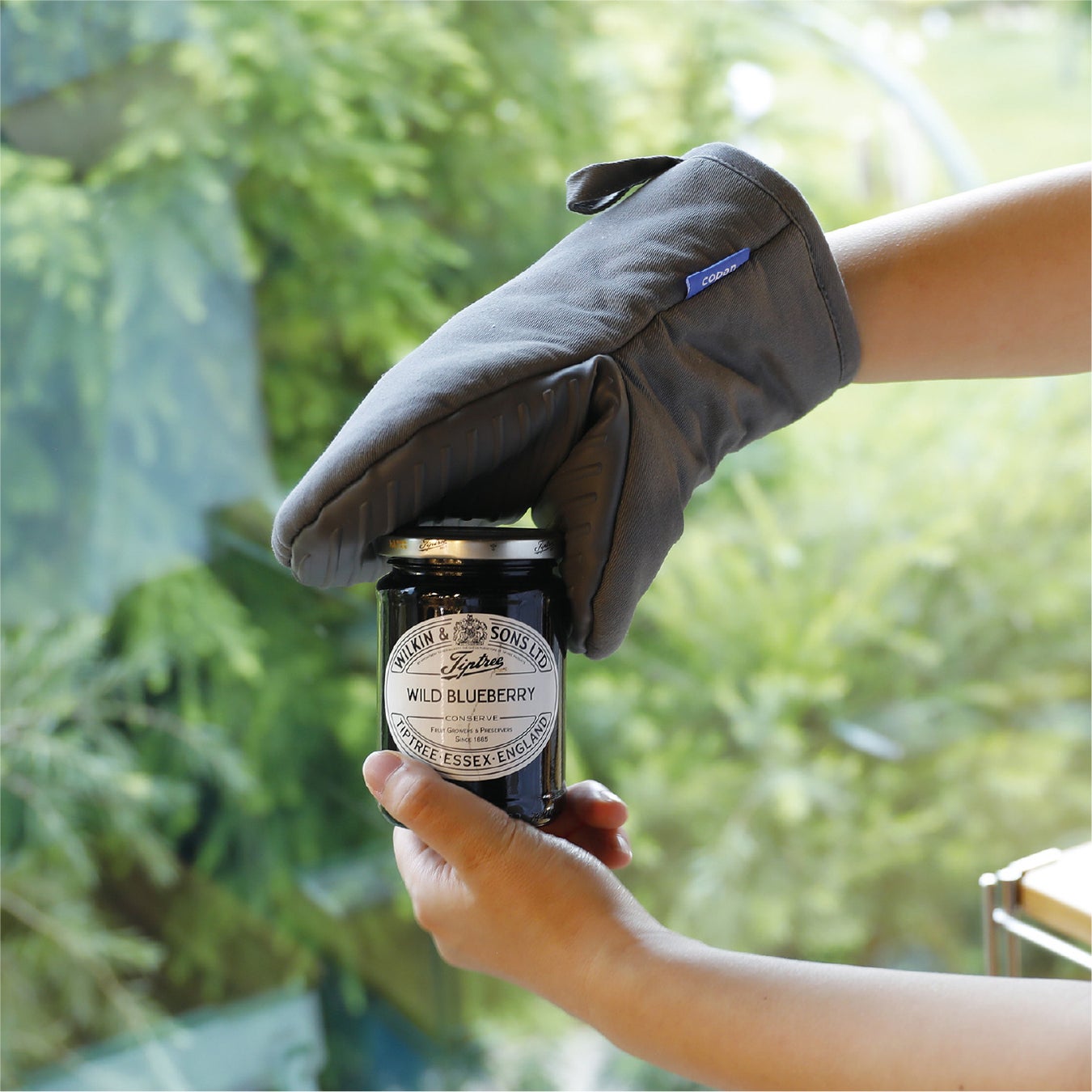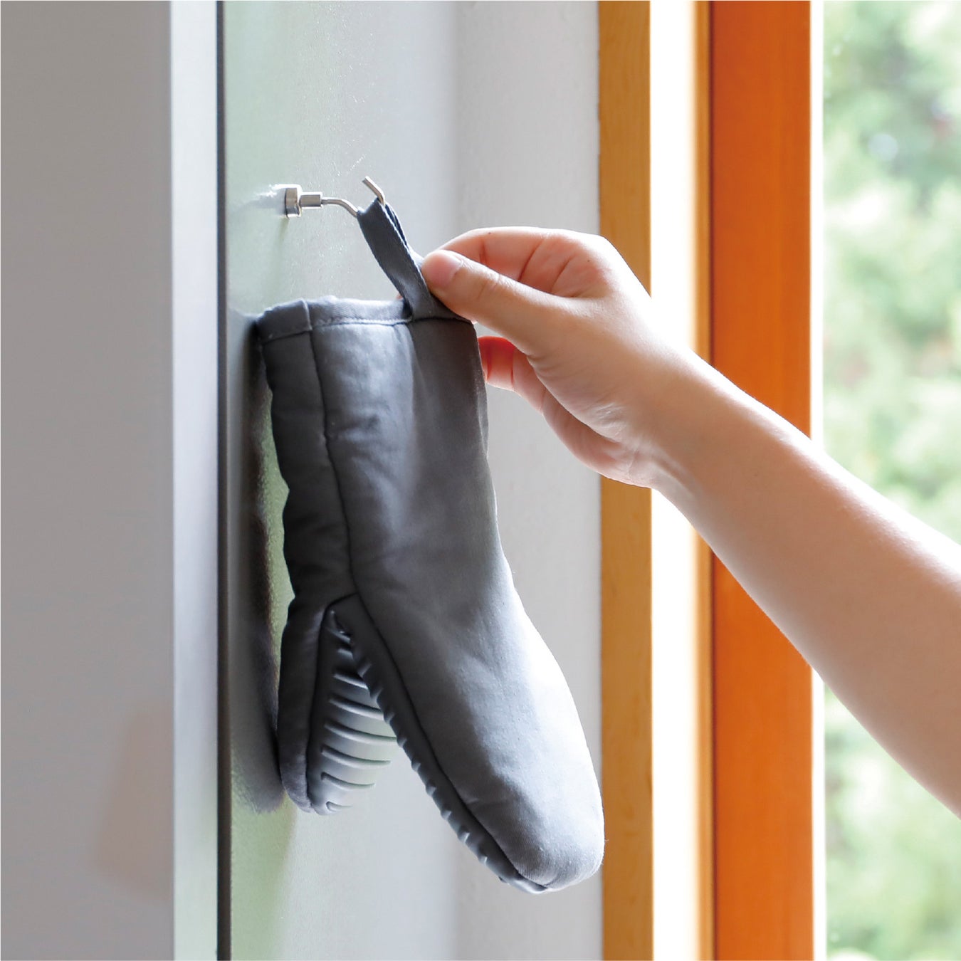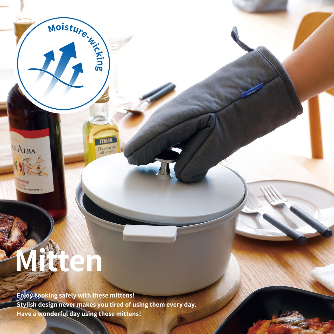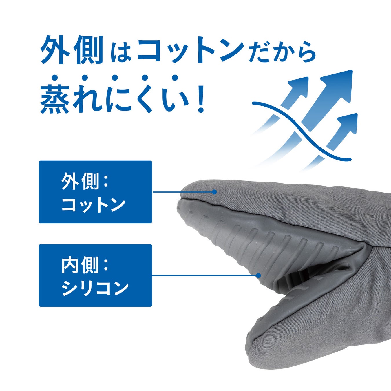 掴む部分がシリコン製なので滑りにくい『コパン 蒸れにくいシリコン&コットンミトン』。