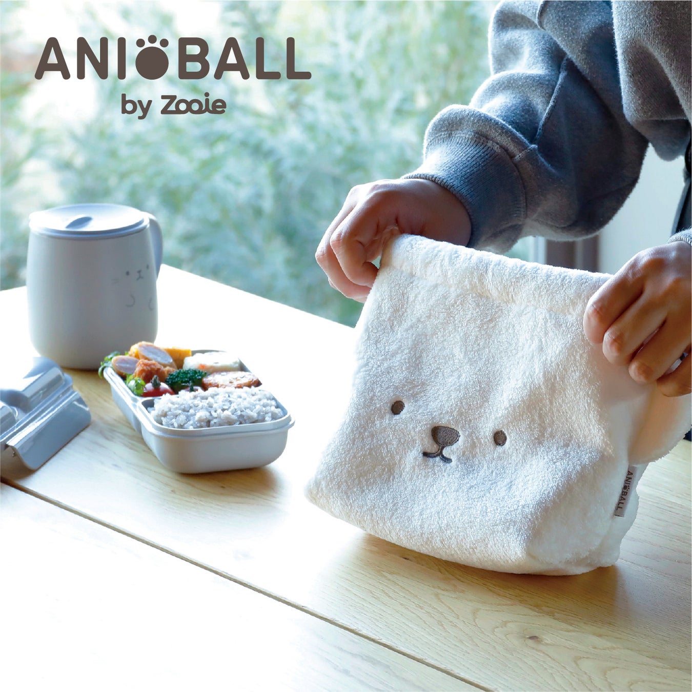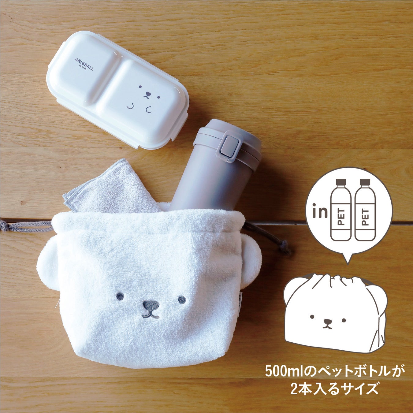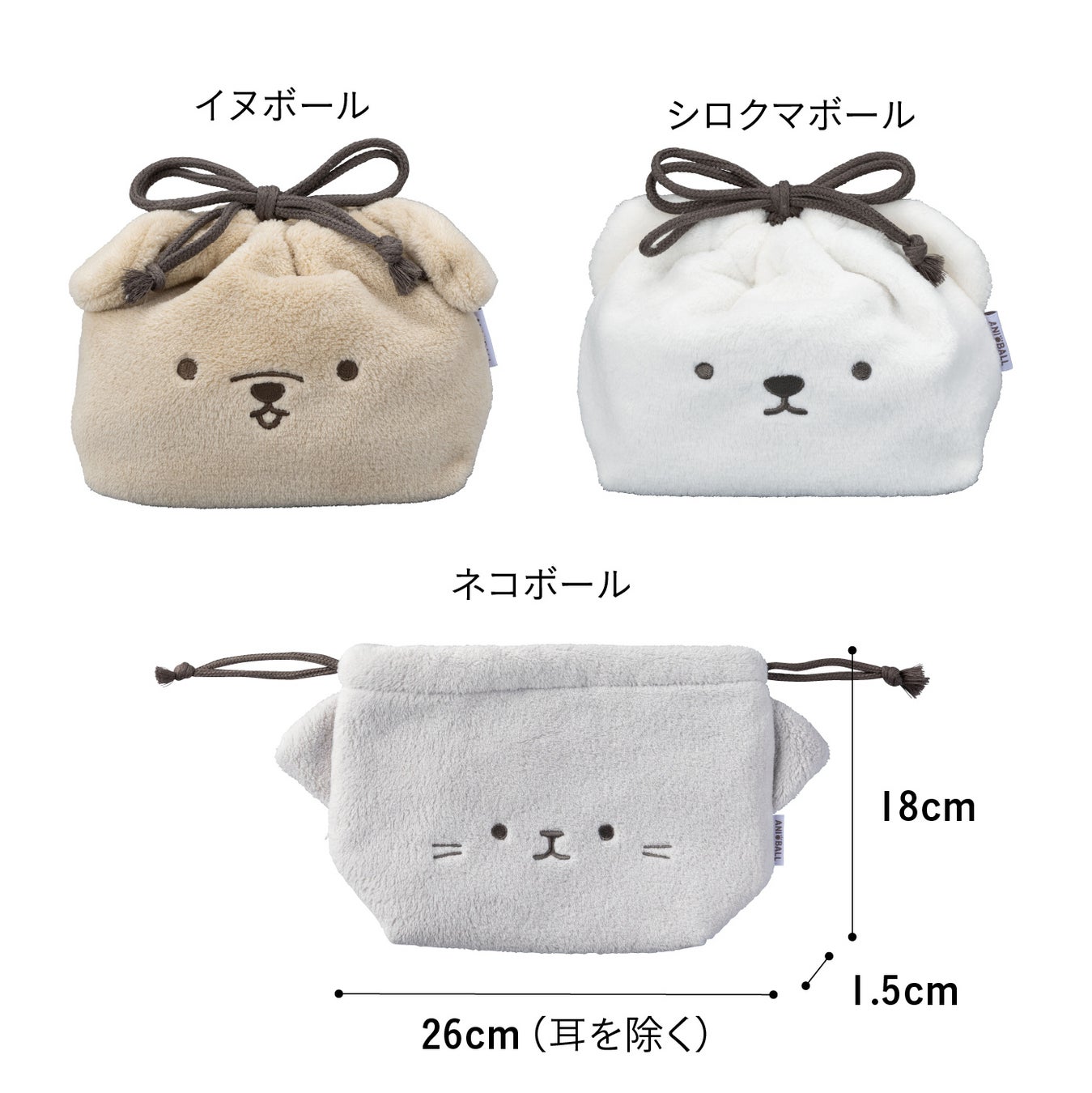 ふわもこで可愛い保冷機能付きの『アニボール 保冷ランチ巾着』。