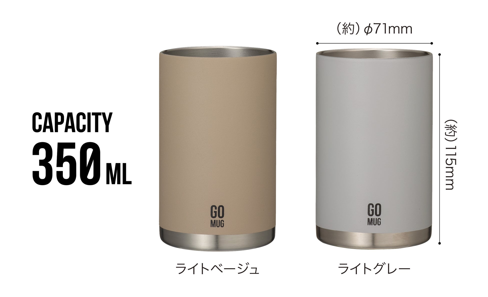 350mlの缶ビールや缶ジュースがぴったり入る、保冷・保温ステンレスマグ「CAN GOMUG 350」。