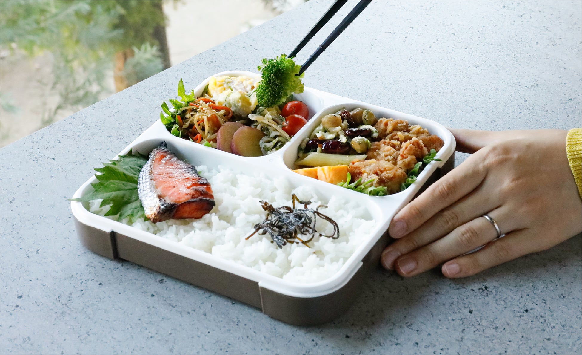 一体型の中仕切りにより、詰めるだけで簡単にお弁当が完成!悩むことなく楽しく盛り付け出来ます。