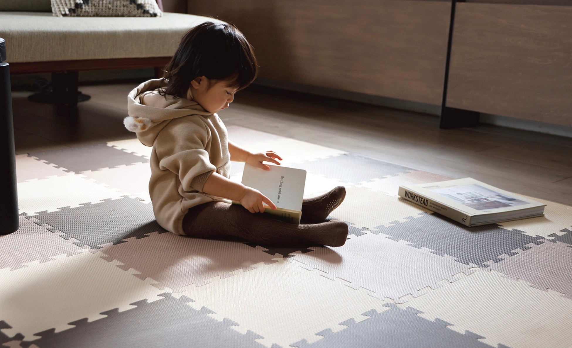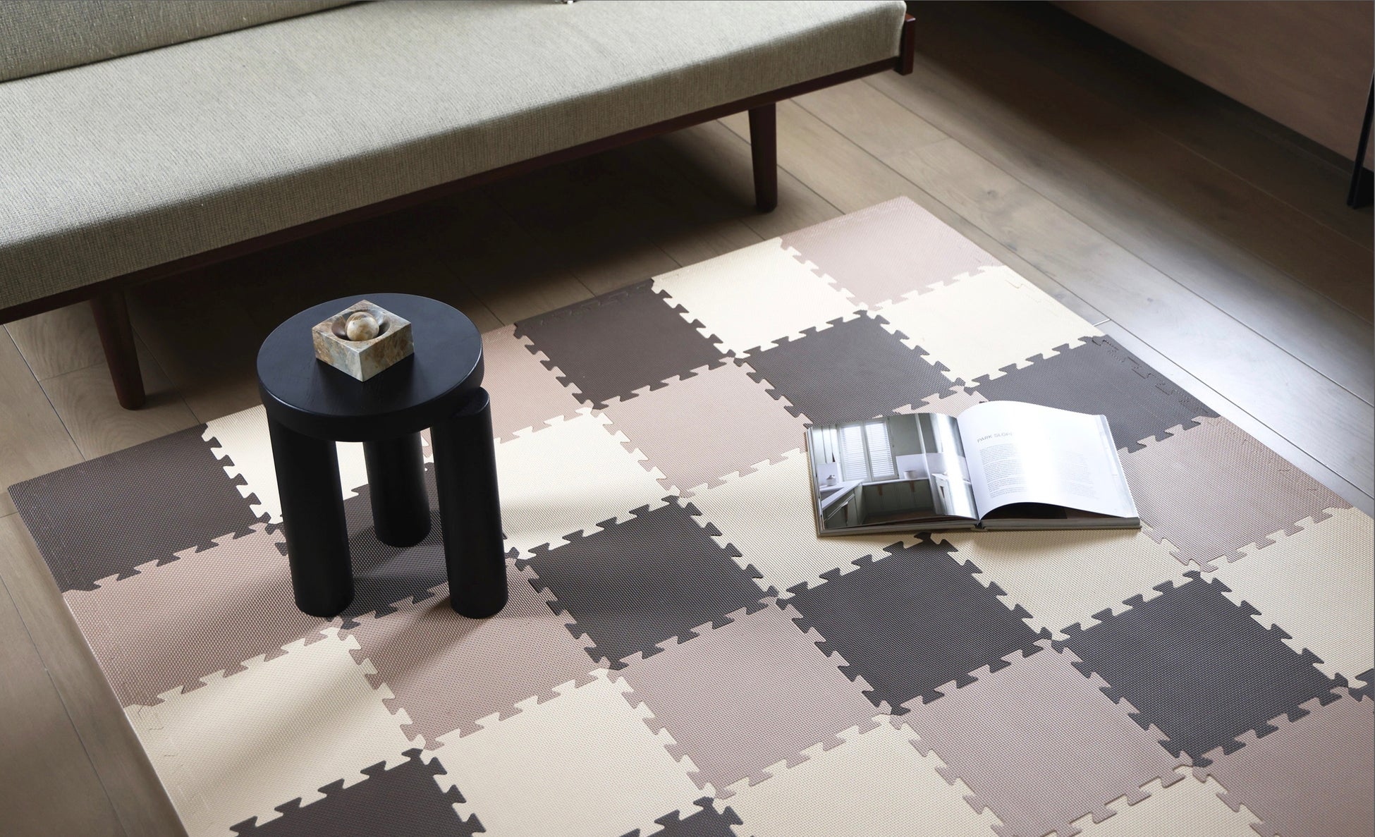分厚いマットは敷き詰めたり、掃除の時にちょっと外したいと思っても意外と大変なのです。