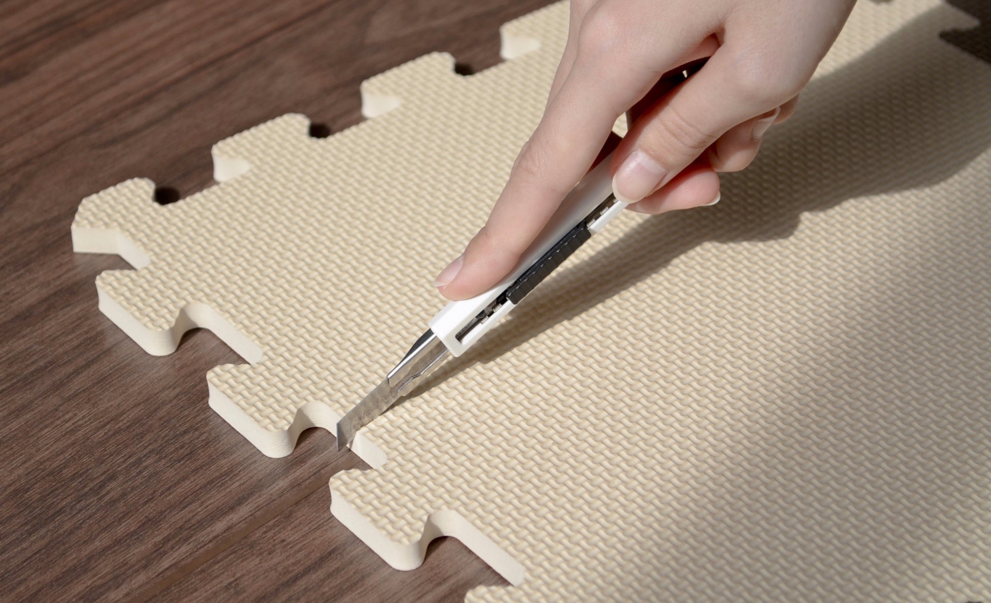 壁や柱に合わせてカットすれば、コーナーにピッタリ敷き詰められて見栄えも抜群。
