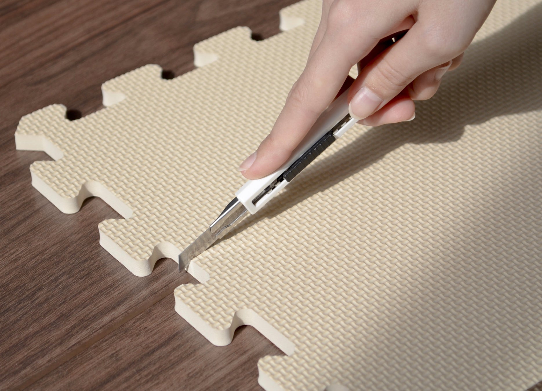 壁や柱に合わせてカットすれば、コーナーにピッタリ敷き詰められて見栄えも抜群。