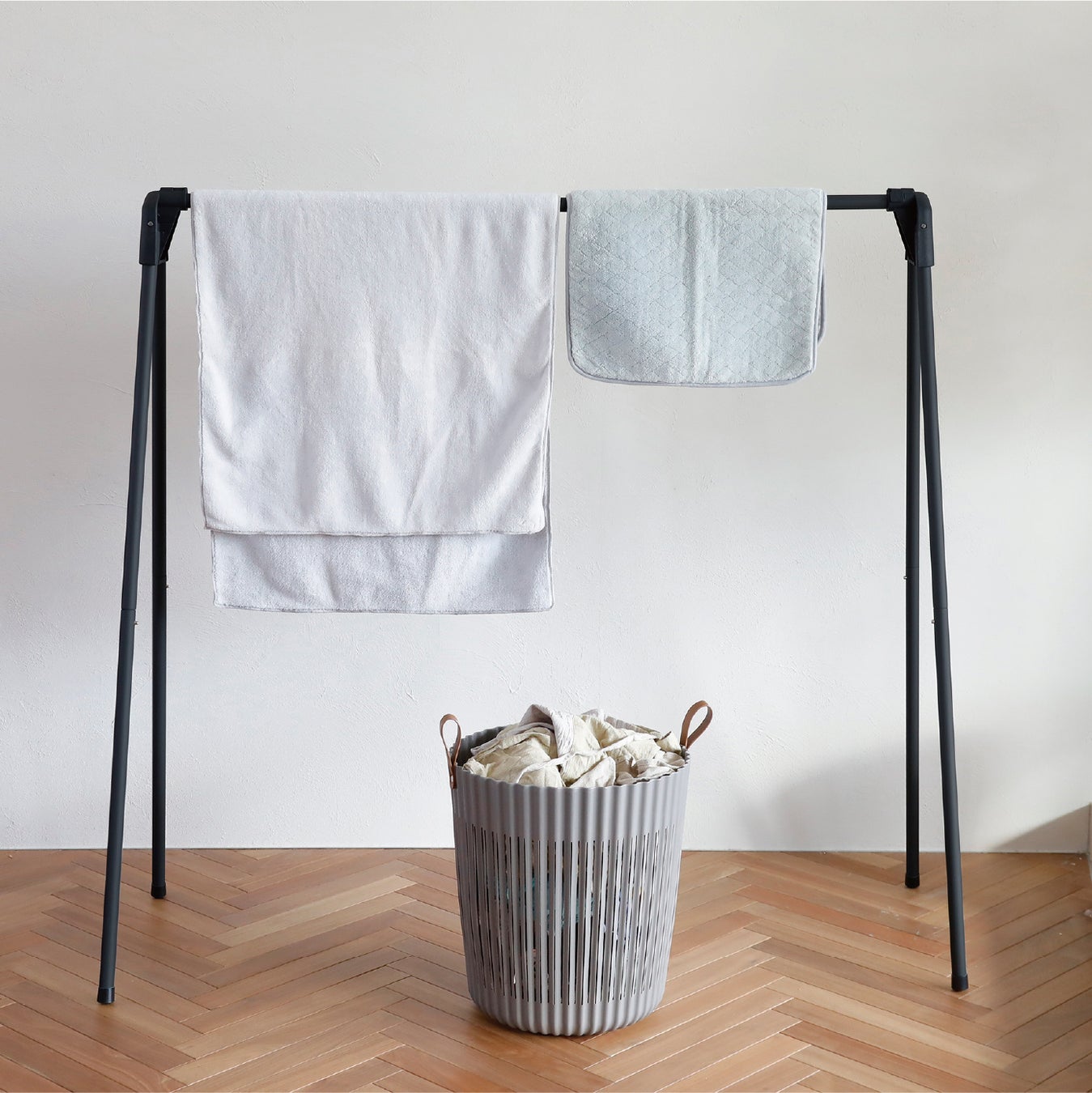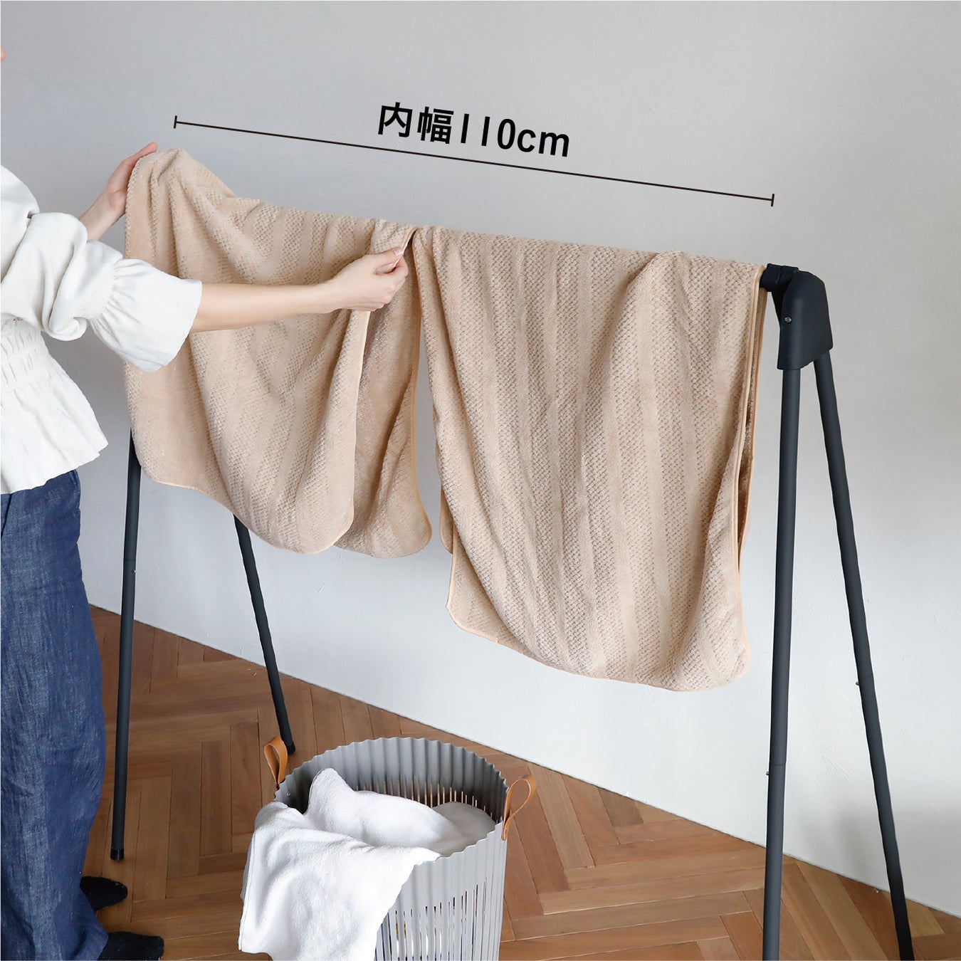幅広設計なので洋服類だけでなく、バスタオルや掛け布団干しにも使えるマルチなスタンドです。