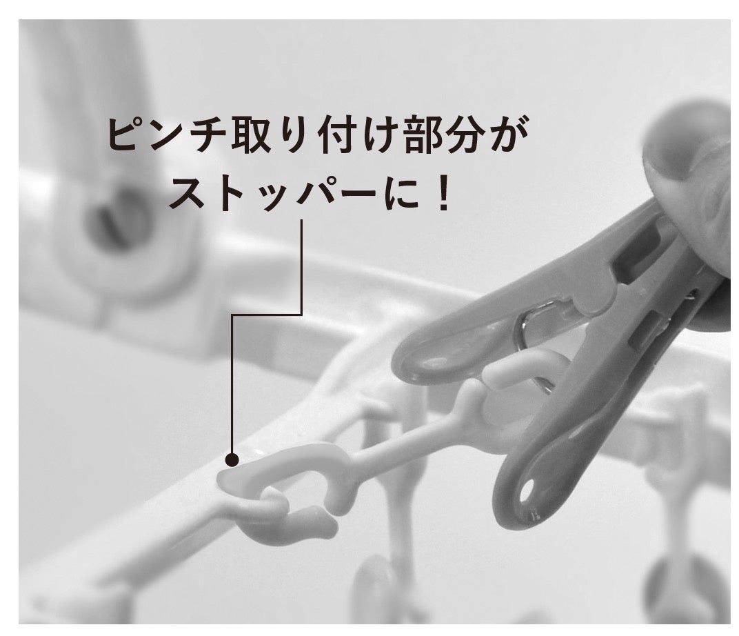 とても小さなことではあるのですが、ピンチの取り付け部分に突起を付けることによってその動きを制限し、ピンチを絡まりにくくしています。