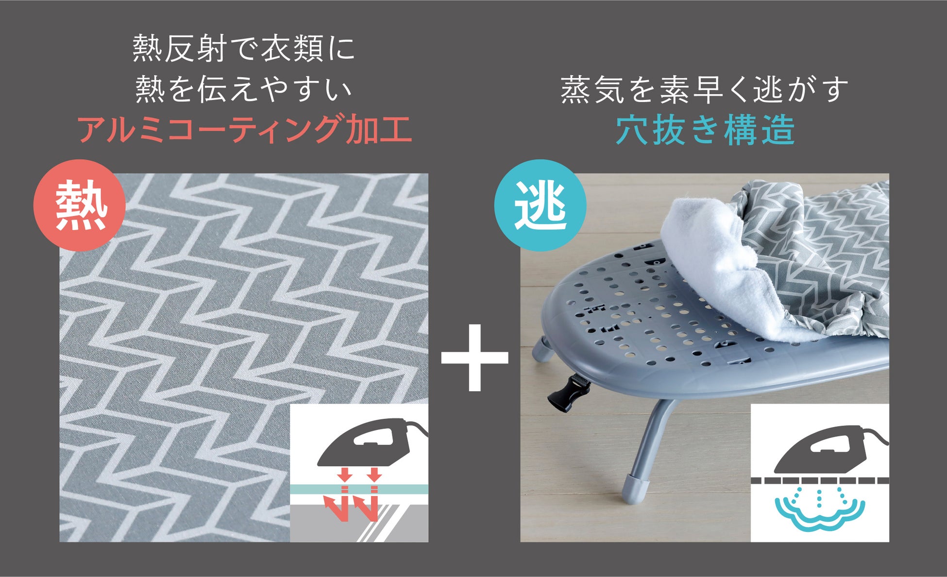 実は「熱を素早く伝える」+「蒸気を素早く逃がす」ことにより、衣類をパリッと綺麗に仕上げることが出来ます。