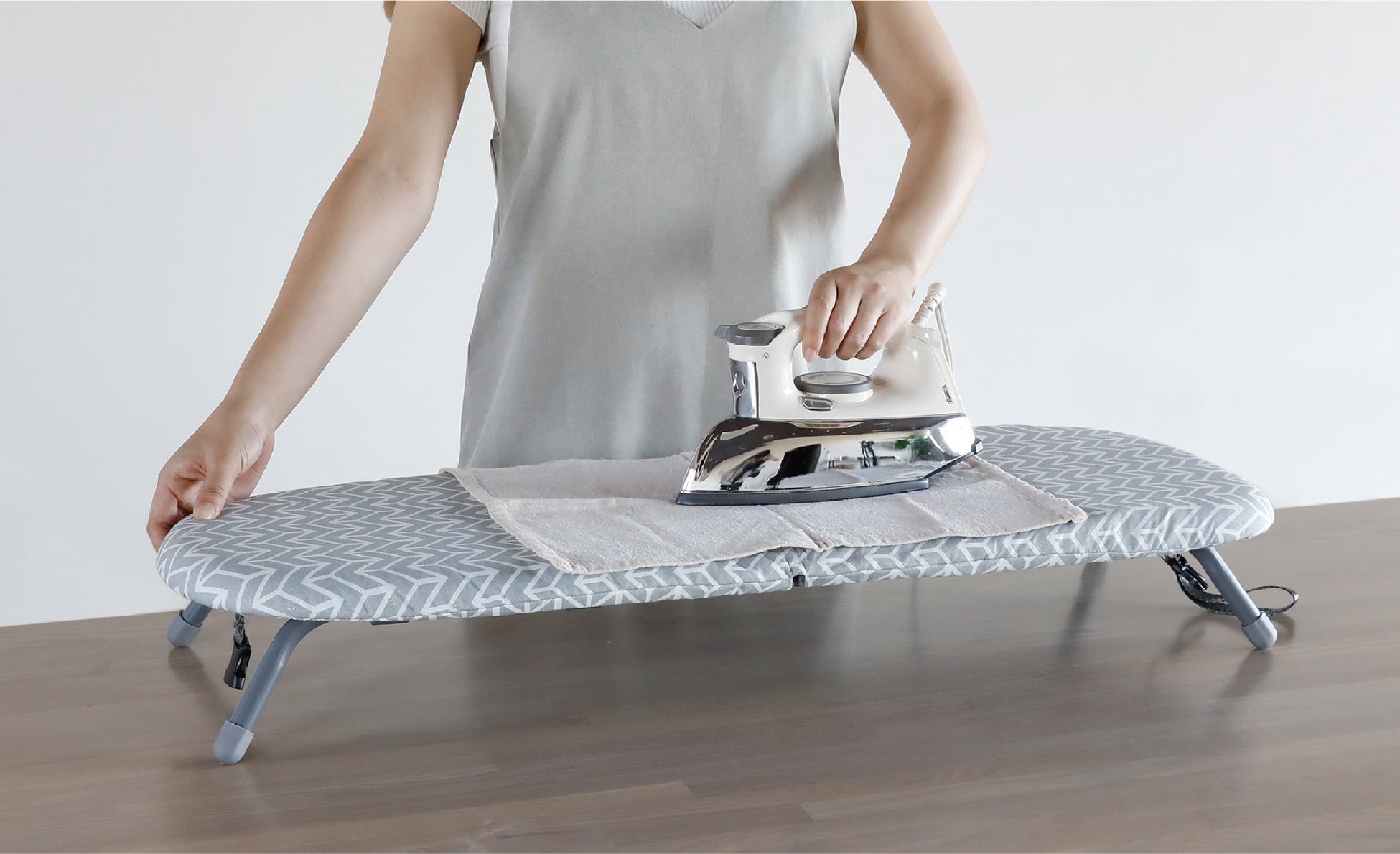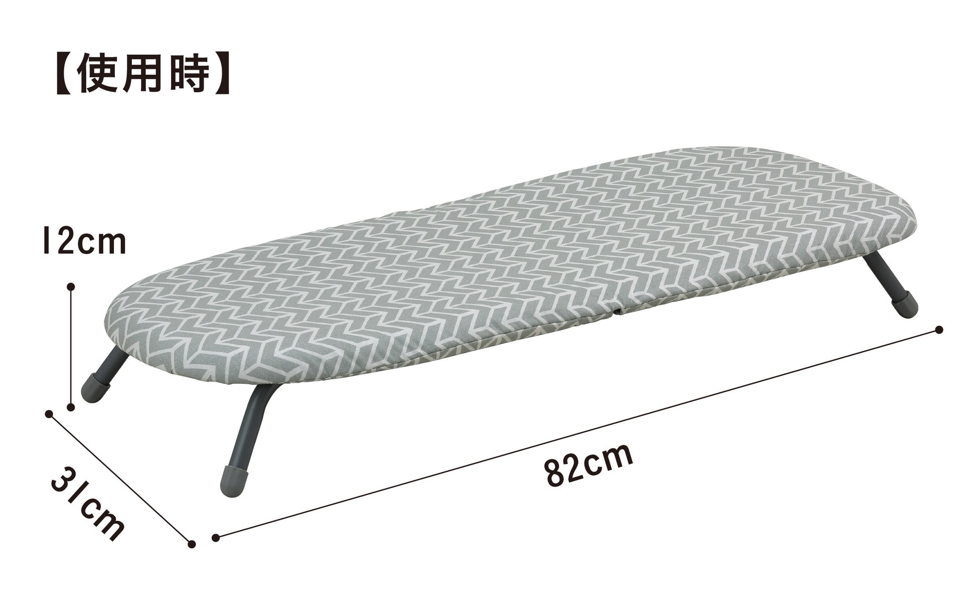 使用時の高さが12cmと低めな設計のため、テーブルの上で使えばスタンド型アイロン台のような使い心地でお使い頂けます。
