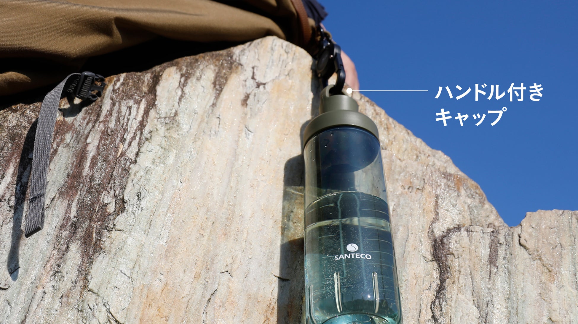 キャップにハンドルが付いているので、バッグにカラビナなどで取り付けたり、指を引っ掛けて持ち歩けるので移動の際便利です。