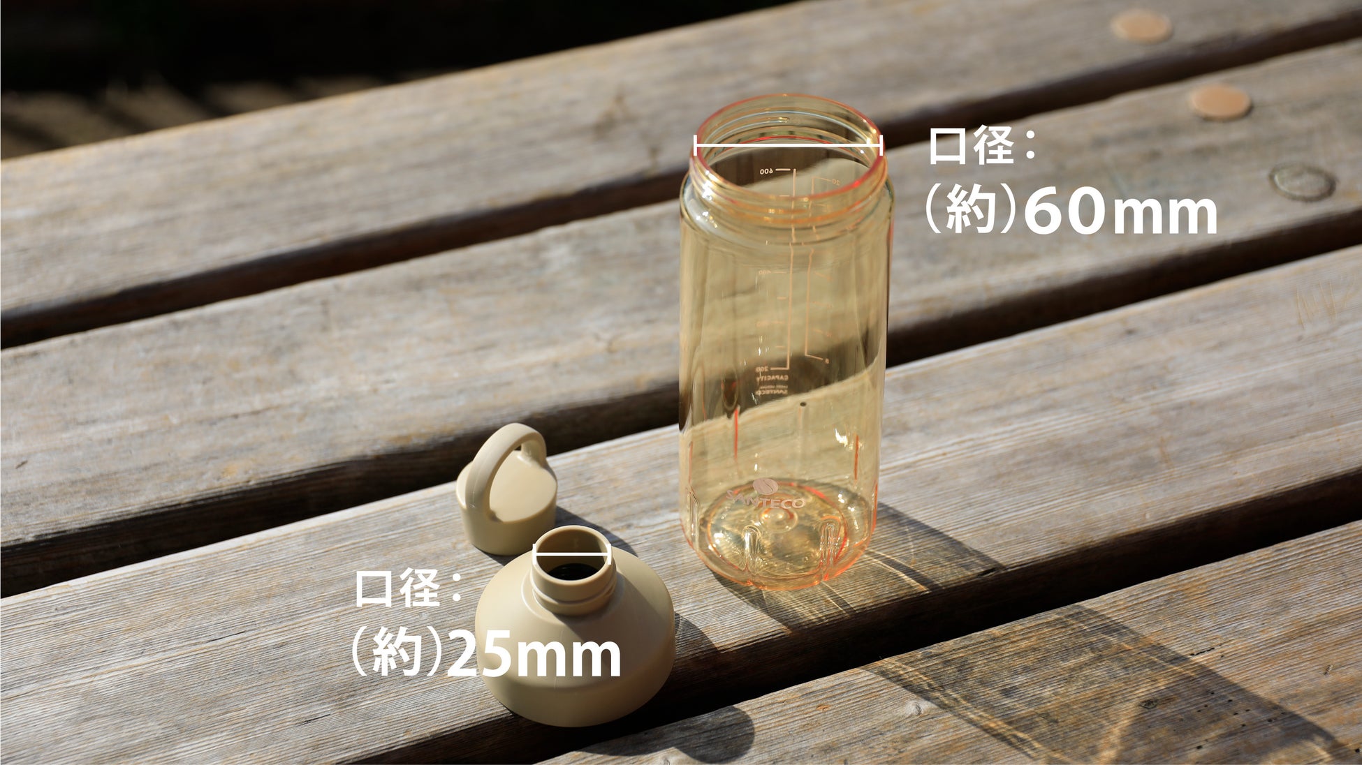 - 広口ボトル(60mm)で洗いやすく、細口で飲みやすい。