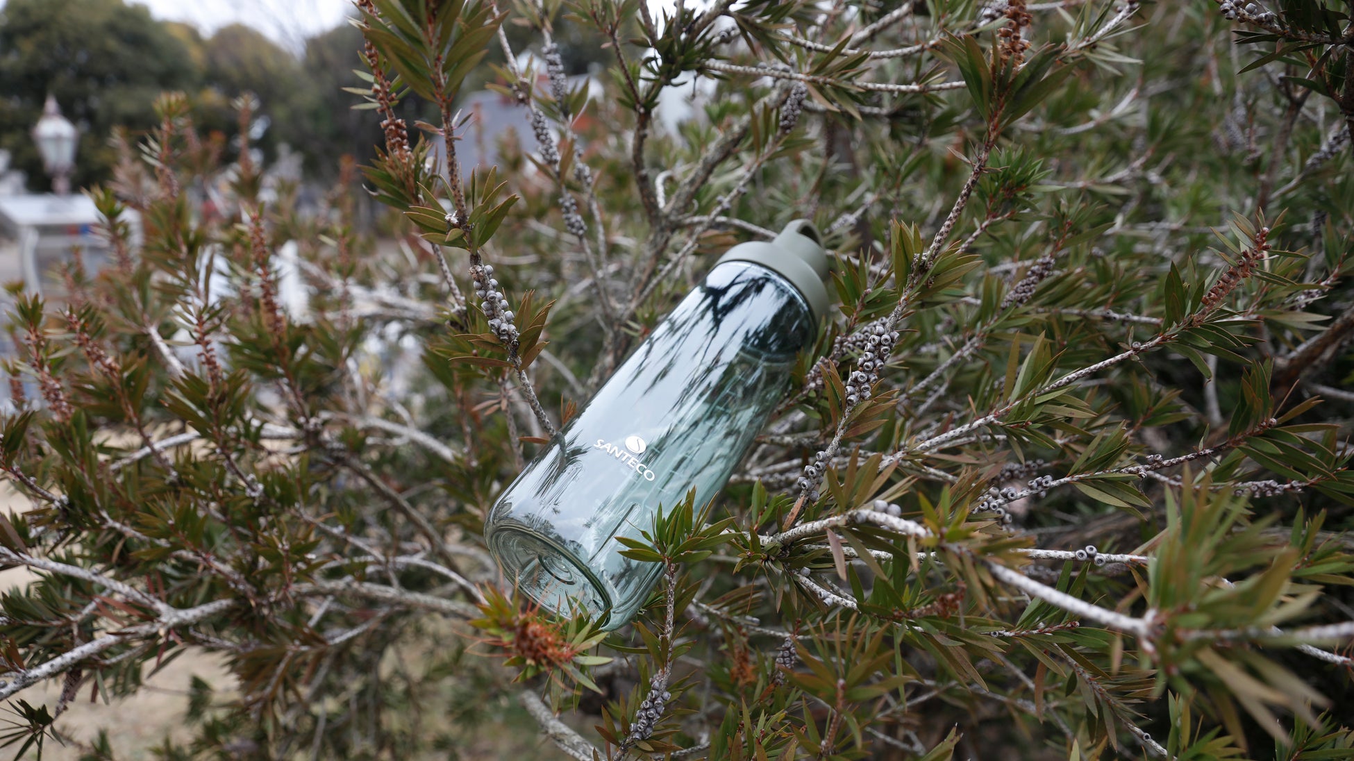 木の上にふわっと乗せられるほどの超軽量ボトル。