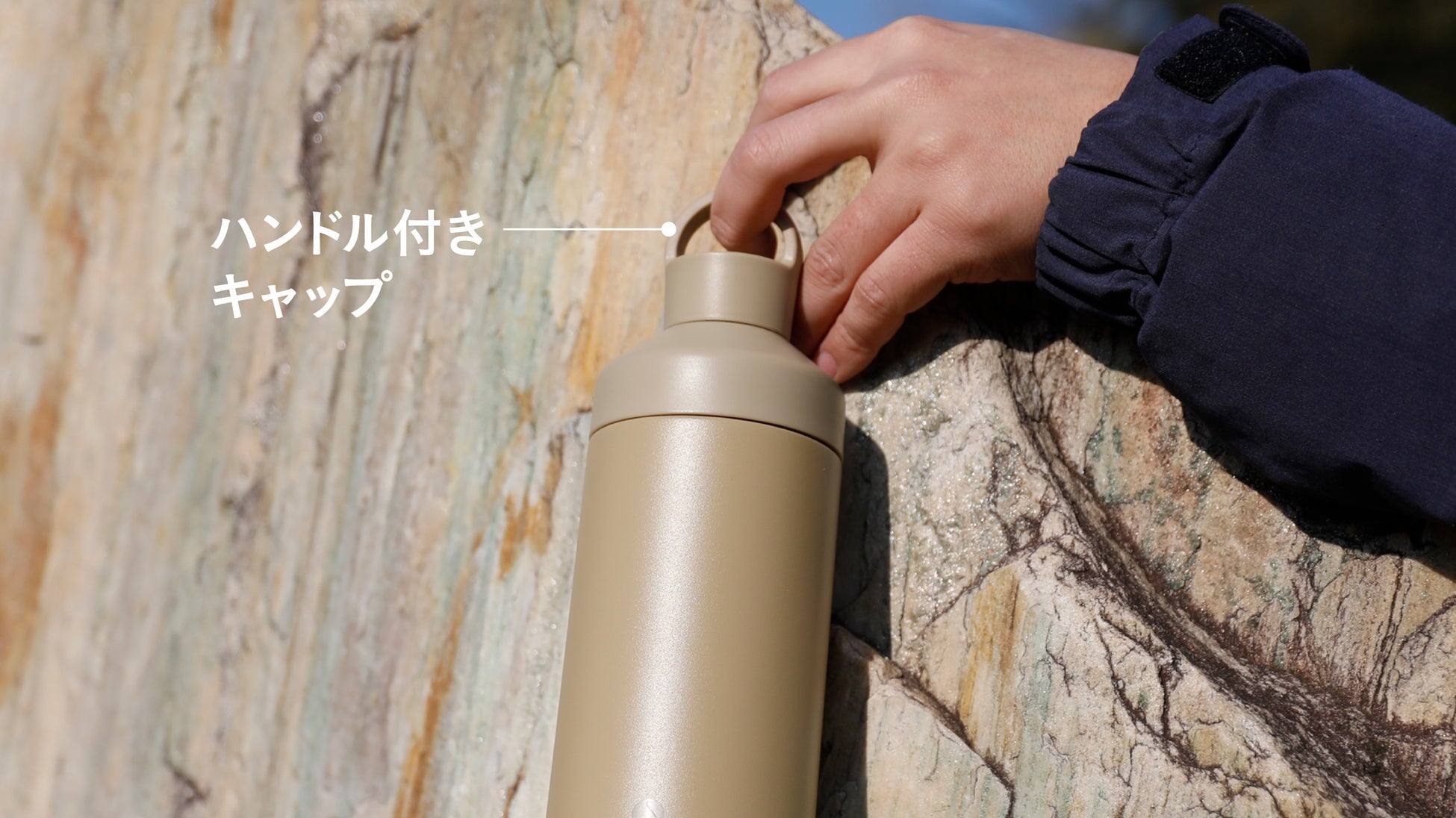 キャップにハンドルが付いているので、バッグにカラビナなどで取り付けたり、指を引っ掛けて持ち歩けるので移動の際便利です。