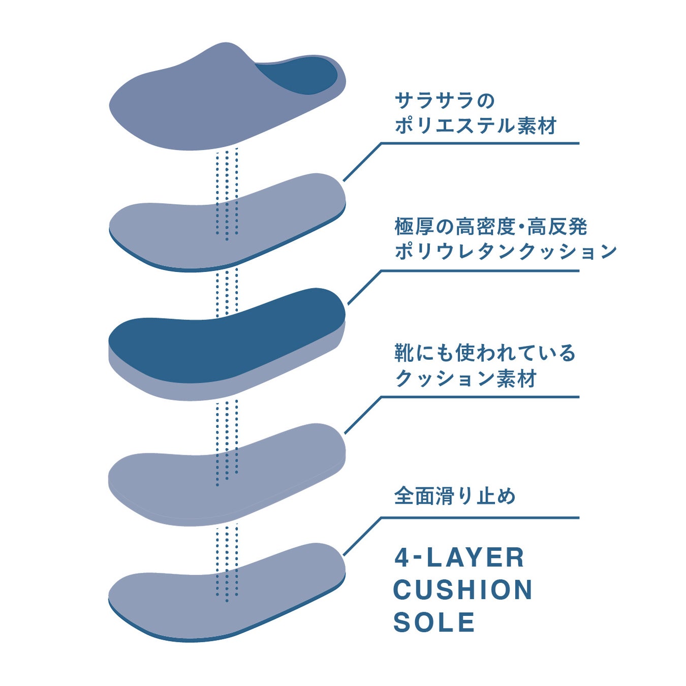 4層のクッションソールが衝撃を吸収し、足裏を優しくカバーします。