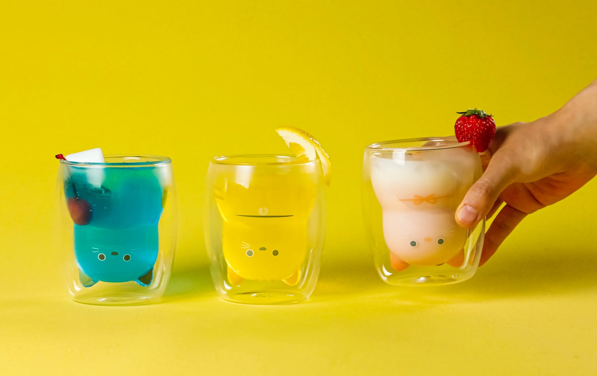 入れる飲み物によって猫の見た目がガラリと変わる、2層構造のネコグラス。